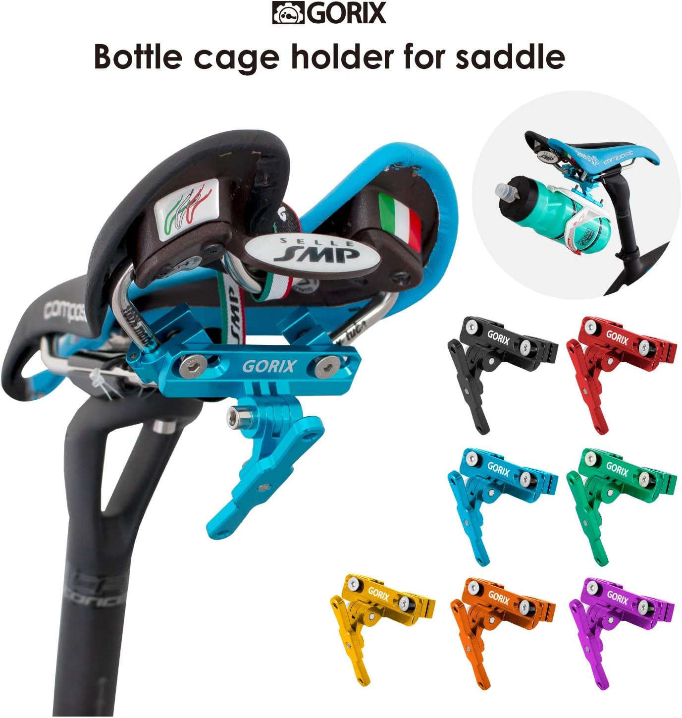GORIX Bicycle Bottle Cage Adapter Mount Adjustable MTB Road Bike Handlebar Water Bottle Holder Seat Post Mount (GX-SDLBC(Global Edition)) (Matt Black)