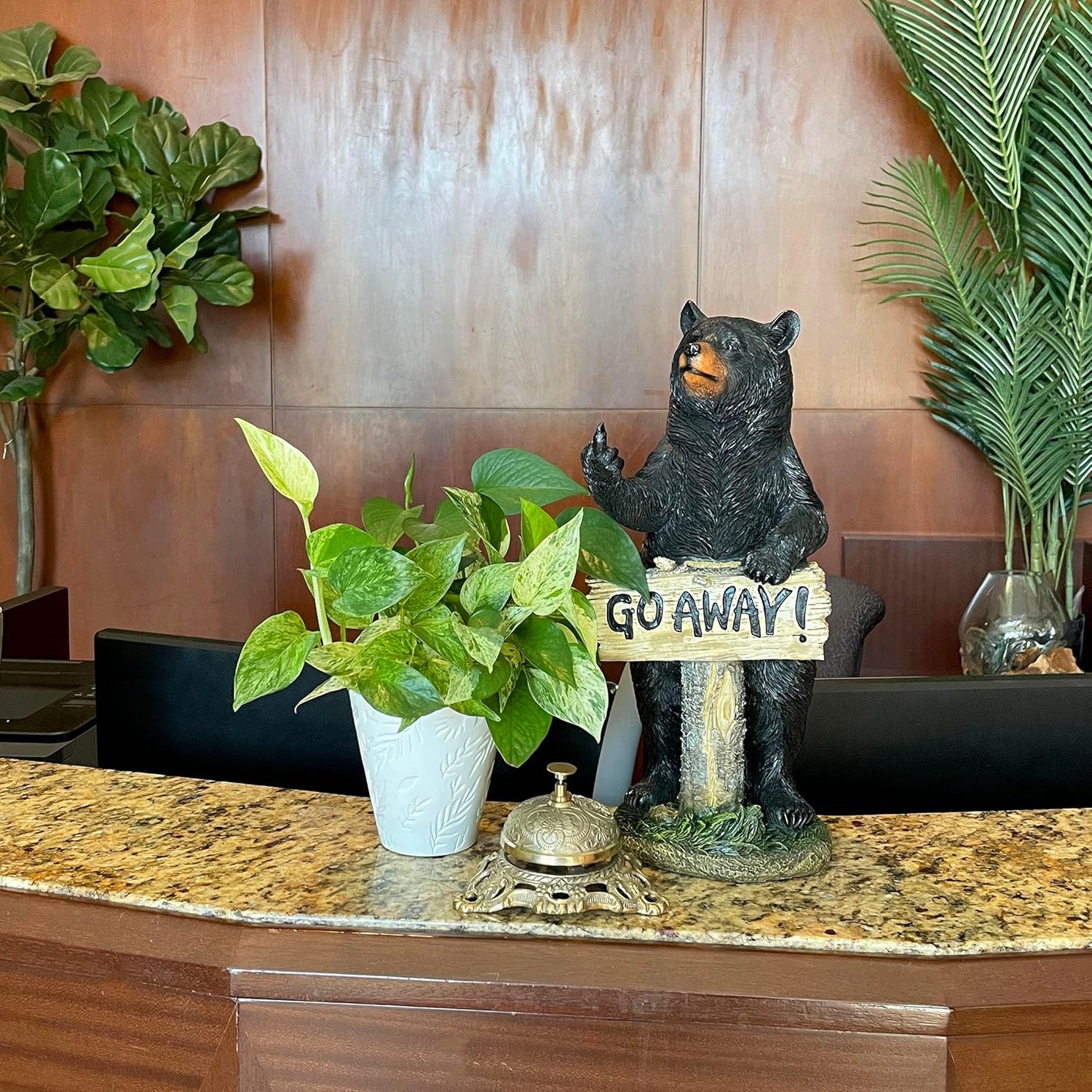 Hand Painted Rude Black Bear Statue with “Go Away” Sign – 15 Inch Tall Resin Outdoor Garden Decor, Cabin Lodge Porch Accent, Durable Weather-Resistant Novelty Animal Sculpture for Yard or Entryway