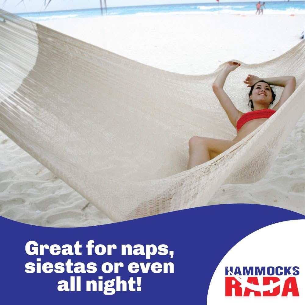 The Hammocks Rada Durasol Nylon Hammock is available in a very nice Natural Color (light Cream Beige), than is an elegant and very neutral color to hang in any place of the house or patio or garden. The Hammocks Rada Durasol Nylon Hammock is our newest Mayan Hammock, available to be use to rude use and in extremes weather inclusive, keeping the commodity of our traditional Cotton Hammocks but with the resistant of a fabric hammock We took many years in develope this hammock, first we start our trying with the Hotels in Cancun and the Rivera Maya and then of got excellent results, now we are ready to sell to our customers Hammock made by hand for Mayan Handcrafters in Mexico for Hammocks Rada, made with Nylon Reinforced against UV Sun Rays