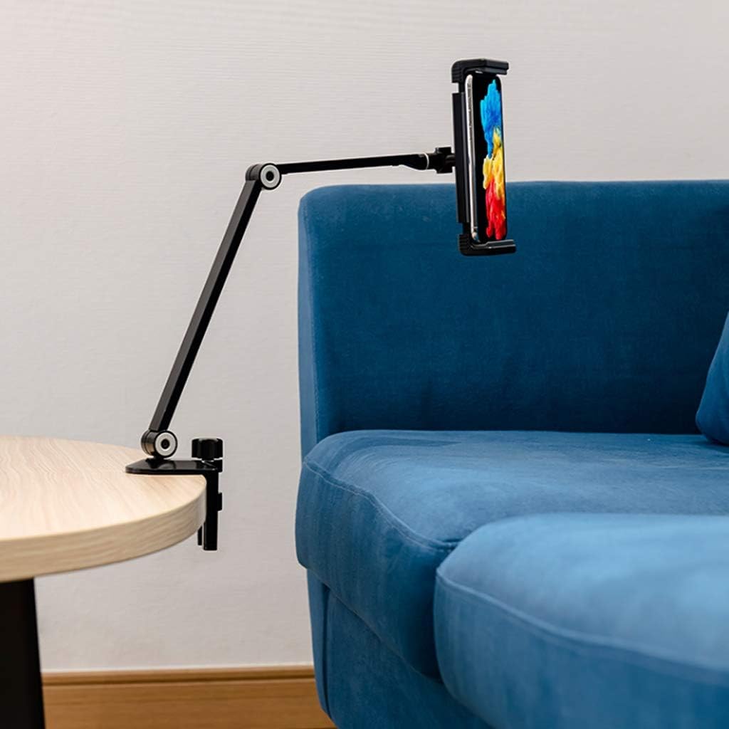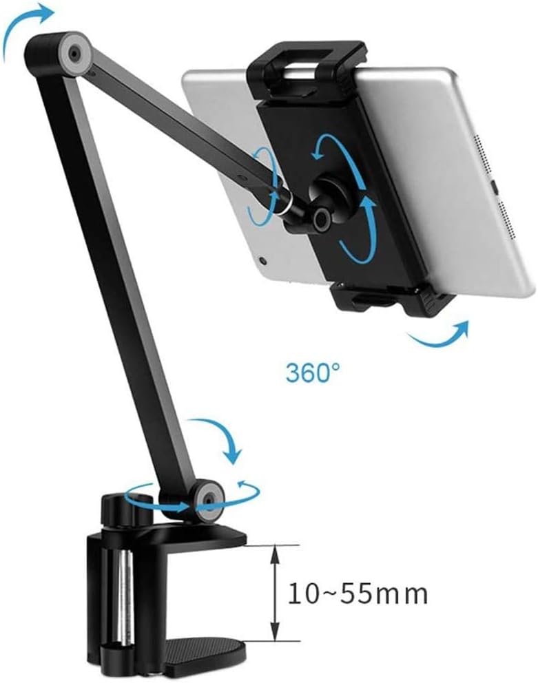 : BracketSize: 29.5x9.8x6.7cmMaterial: Aluminum alloy material + silicone + metalFeatures: follow the line of sight, foldable and portable.Scope of application: mobile phone tablet between 4.7 ~ 12.9 Applicable scenarios: Douyin, live broadcast, bedside broadcast, bedside, travel, photoColor: black, silverFeatures: Aluminum alloy pole with aluminum die-casting C-shaped clamping base, 360-degree multi-angle adjustment, engineering design, adjustable folding arm, four-axis free rotation, providing you with a comfortable perspectiveFeatures full cross-device compatibility with phones, action cams, and 360° cameras. For studio, field, and travel