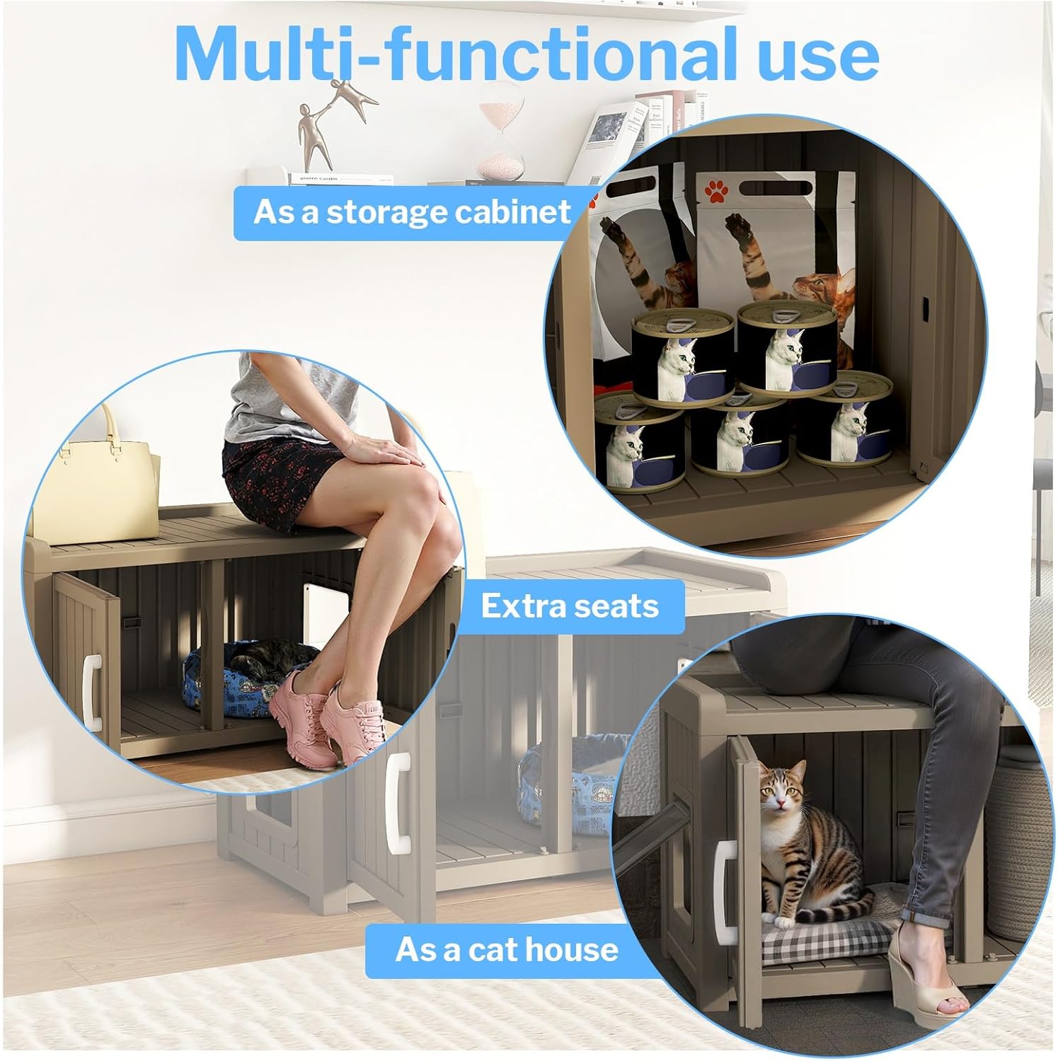 This cat litter box enclosure features a double door design, allowing smooth entry for your cat and convenient access during litter cleaning. As practical cat litter box furniture, it works as a hidden cat litter box to keep indoor spaces neat, merging functionality with daily pet care needs.