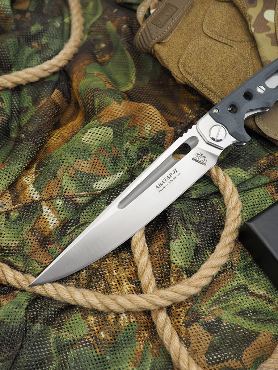 HOKC (NOKS) AVATAR-H URBAN EDC POCKET KNIVES A folding knife designed for professional users, Avatar-H features innovative opening mechanism for fast end easy opening. Avatar-H is easy to carry, with a highly functional 5.83"" satin finished long and durable D2 stainless tool steel blade. Its powerful Liner Lock mechanism also features built-in blade locking safety. Designed by Russian master Alexander Biryukov. ABOUT HOKC The company has been in existence since 1998. We specialize in the development and manufacture of edged weapons and special equipment. Some samples have been officially adopted by elite units of the Russian army and special forces. This weapon has proven itself well in combat operations. Using the experience gained in the military field, HOKC produces a range of knives for civilian use, as well as equipment for hunters and travelers. At the same time, the most modern materials and technologies developed for the military industry are used. HOKC products have their own design style, which is very different from the style of other companies and not afraid to explore new areas. Our developments and our products have been tested in the harshest conditions. And we can proudly say that we have over 25 years of experience and innovations in knife industry.