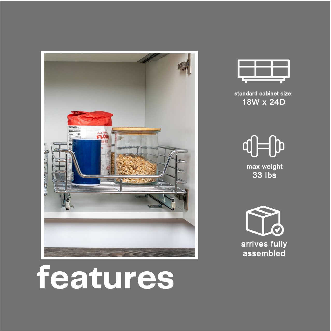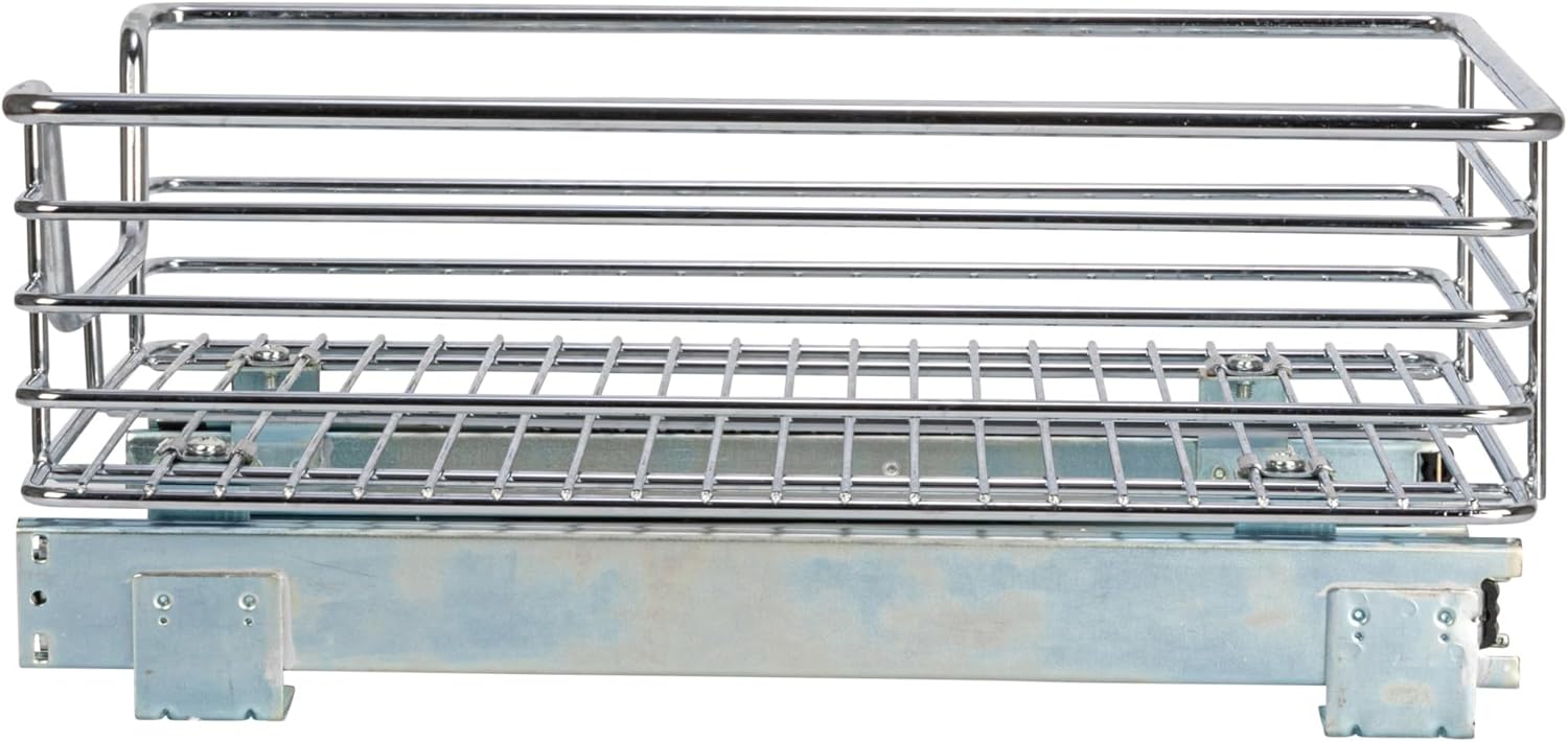 This innovative organizer is designed to bring efficiency and convenience to hard-to-reach spaces. With its cleverly crafted features and sturdy construction, it's the perfect solution for organizing cookware and bakeware. Each organizer offers three compartments to accommodate multiple pieces of cookware and bakeware. With ample space, pots, pans, baking sheets, and more can be easily arranged to remain within reach and neatly organized. Equipped with an easy-mount full-extension ball-bearing sliding base, this organizer ensures smooth and effortless access to kitchen essentials. No more rummaging through cluttered cabinets – simply slide out the organizer, and everything is readily accessible. Designed to fit most standard kitchen cabinetry, this organizer can be effortlessly mounted directly onto hard surfaces. Its versatile design makes it suitable for a range of kitchen layouts, allowing valuable storage space to be fully utilized. Crafted from high-quality, chrome-plated steel, this organizer is built to last. Its durable construction ensures stability and longevity, even when supporting heavy cookware. Base is fully assembled, simply insert the steel dividers and its ready to go. Installation is a breeze with mounting hardware included for convenience.