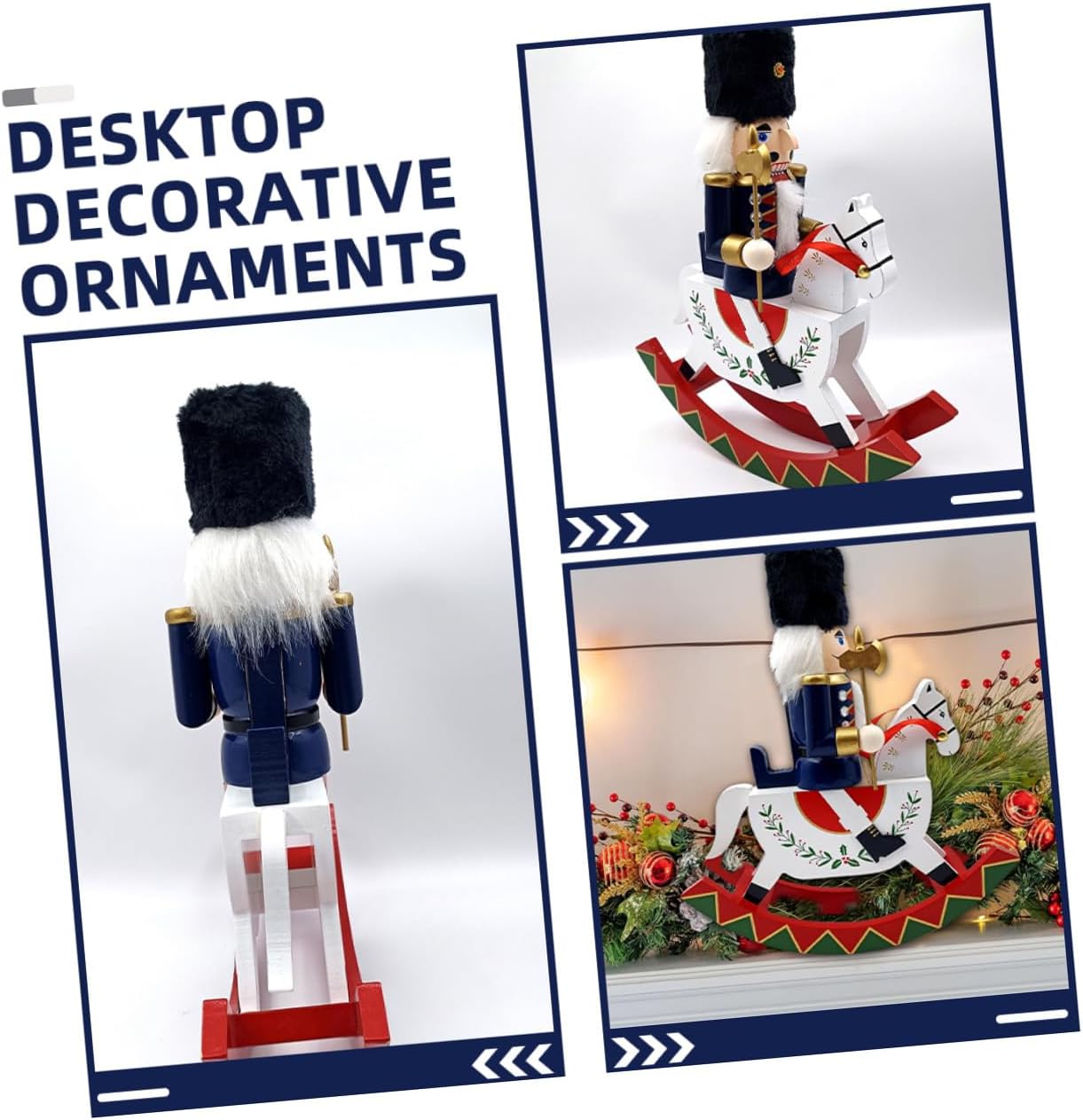 Package Include 1 x wooden horse nutcracker Features -Desktop ornament: ideal for placing on desks, bookshelves, and other surfaces, this decoration brings a splash of color and charm to your home environment -Robust quality: each rocking horse nutcracker is carefully handmade, ensuring attractive and attention to detail in every piece nutcracker statue decor -Material:Wooden -Product Info:Nutcracker ornaments -Royal soldier design: inspired by royal soldiers, the unique design of this ornament makes it a standout piece in any holiday decor collection tabletop nutcrackers ornament - christmas decoration: this meticulously crafted rocking horse nutcracker adds a festive touch to your christmas celebrations, enhancing the holiday spirit christmas nutcracker statue -Ideal christmas present: this ornament makes a thoughtful giving for friends and family, bringing warmth and joy to their holiday season hand-painted nutcracker figure - Size: 30.50X26.00X9.20cm/11.99X10.22X3.62in - Goods Informationdesktop nutcracker puppet These decorative nutcrackers can also be used as tabletop centerpieces, making them a versatile addition to your holiday decorations.christmas nutcracker statue Place these wooden nutcracker soldiers on your fireplace mantel or shelves to create a traditional Christmas atmosphere.christmas nutcracker puppet The nutcracker ornaments are ideal for adding a festive touch to your home decor