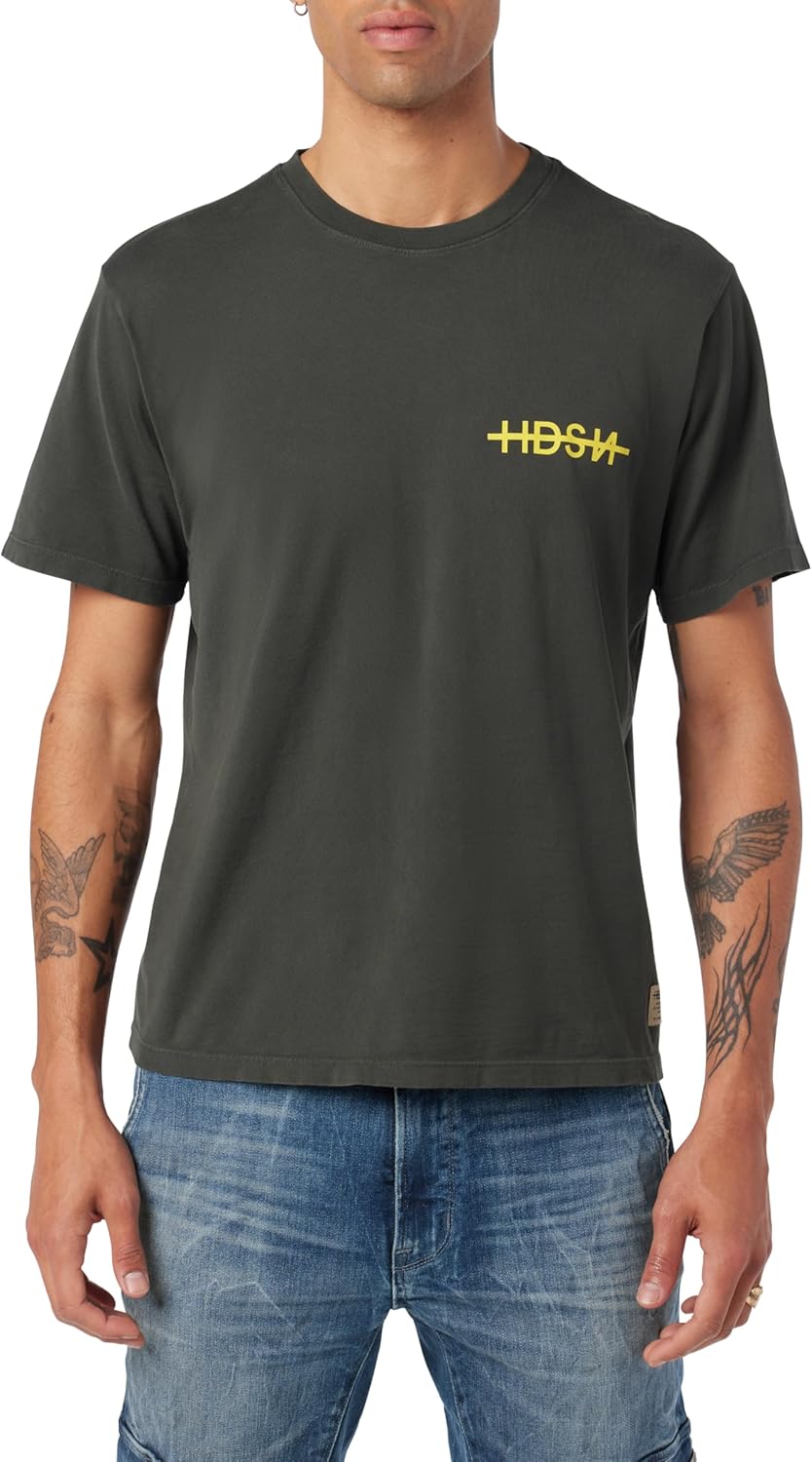 Our vintage graphic men’s T-shirt will quickly become a lightweight, easy-to-wear part of your spring and summer wardrobe. Timeless and stylish with the right cut to be comfortable all day, this shirt for men comes in various colors and sizes to help you find the right fit. Made from soft-to-the-touch 100% woven cotton, this casual piece of men’s fashion can be worn alone in warm weather or under a jacket in cooler weather. It looks great dressed up or down, no matter where you wear it, and can also be used as a gym shirt for running or working out.This T-shirt for men features an easy fit and is finished with gentle distressing for a worn-in look. Outdoor, active, and urban-style enthusiasts can all get the perfect look with this shirt. It’s machine washable in cold water for easy care and style.Hudson Jeans offers style that’s irreverent, effortless, and just plain cool. We provide quality clothes for men and women that make you look and feel your best. We’re more than a denim brand. Denim is our canvas.