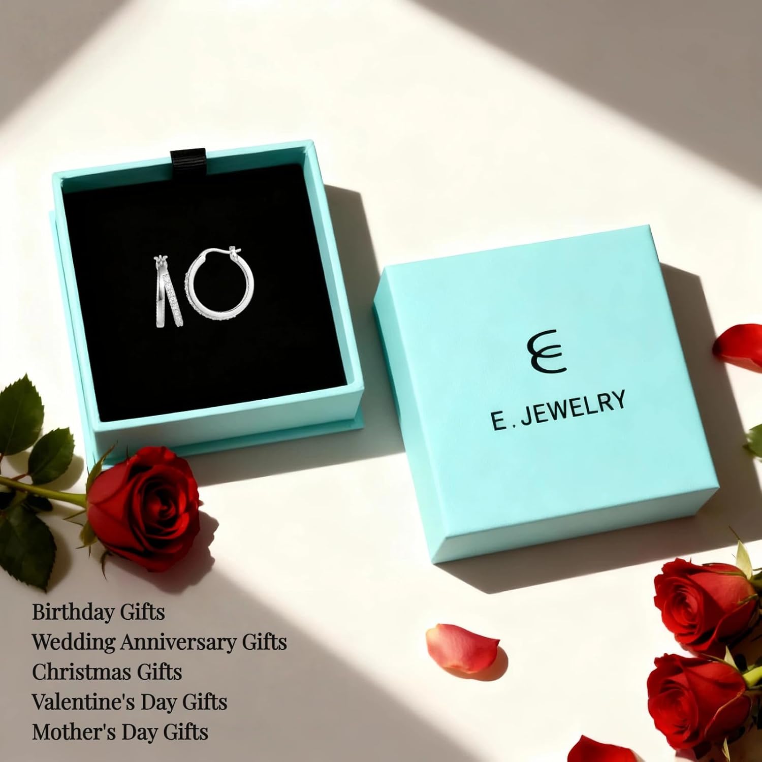 E Jewelry focus on women fine jewelry, combined with charming cubic zirconia and hypoallergenic sterling silver to make eternal ladies jewelry, where you can find any style jewelry you want. E jewelry is designed about a joy for life and a timeless beauty, which come from love and dream. All of our products are manufactured at a high level. Every detail is highly valued from concept to completion, to make sure every piece of the jewelry to be the best one. AFTER-SALES SERVICE: 60 days free risk money back to protect you when you receive any defected order, welcome contact us for any question or advise. PACKAGE INFORMATION: ♥1*Silver double hoop earrings ♥1*Silver polishing cloth ♥1*Gift box Great Gift Ideal For: Anniversary, Wedding, Birthday, Date, Graduation, Romantic Surprises, Valentine's Day, Thanksgiving' Day, Christmas, Mother's Day, New Year.