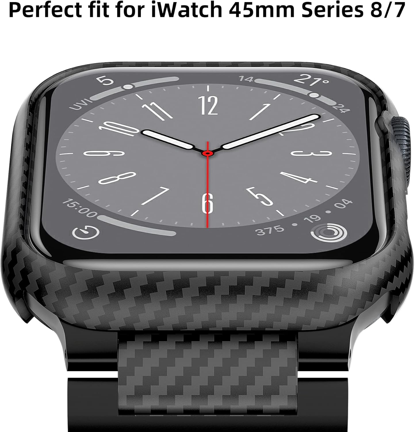 • Precise Cutouts: Easily rotate the digital crown and access to all the controls, sensors, 0.5mm higher than the screen protector film, Never worry about hanging on it, this carbon iwatch series 7 45mm case fits for apple watch 45mm only (No Screen Protector)