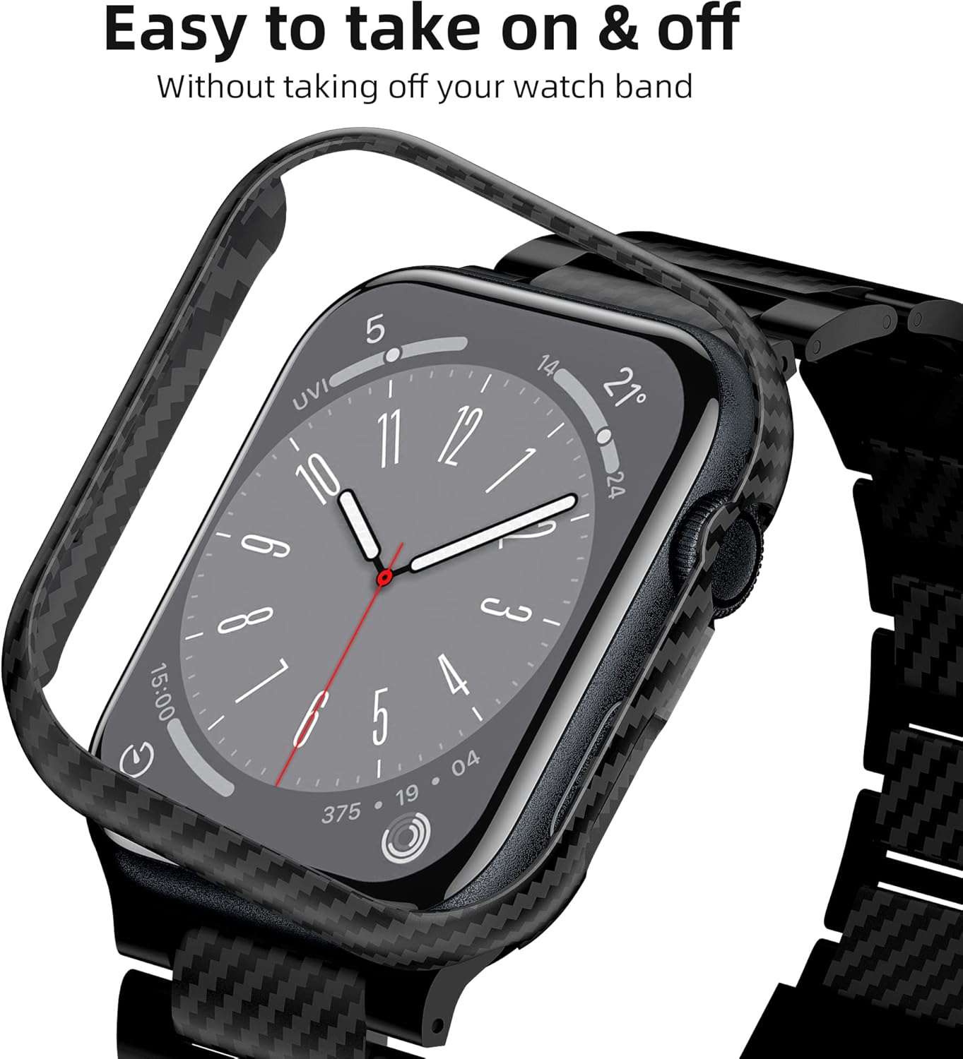 • Ultra Light & Thin: Only weight 0.0019 lb, thickness 0.03 inch, slim bumper carbon fiber iwatch 45mm case on your watch as light as a feather that doesn’t have any bulky, you even can't feel it