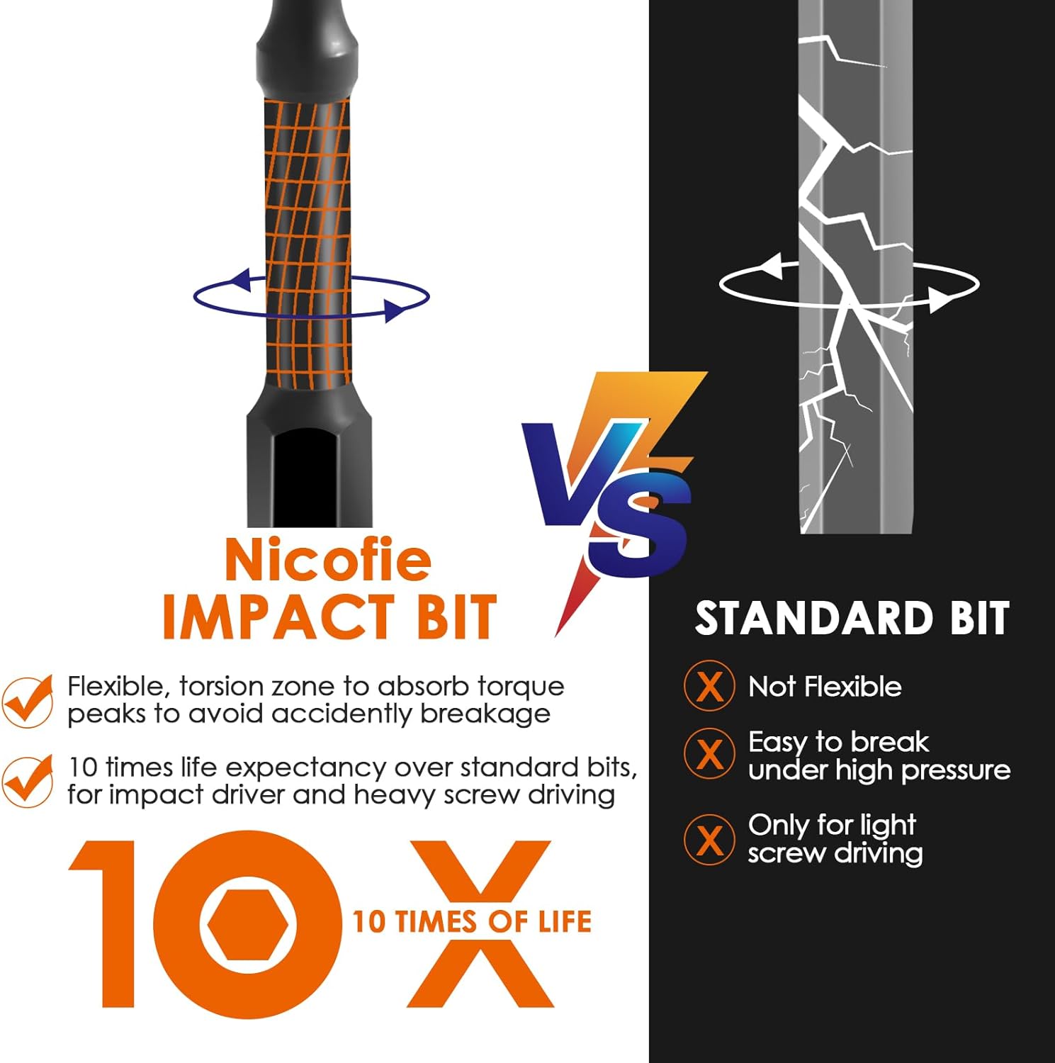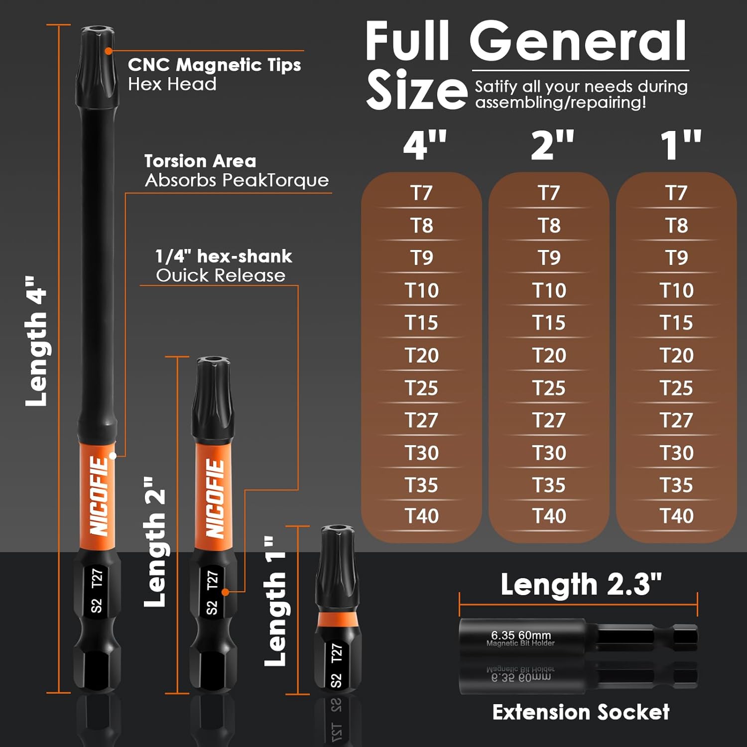 | Bit Compatibilities | Torx screws and bolts (T7 to T40) |