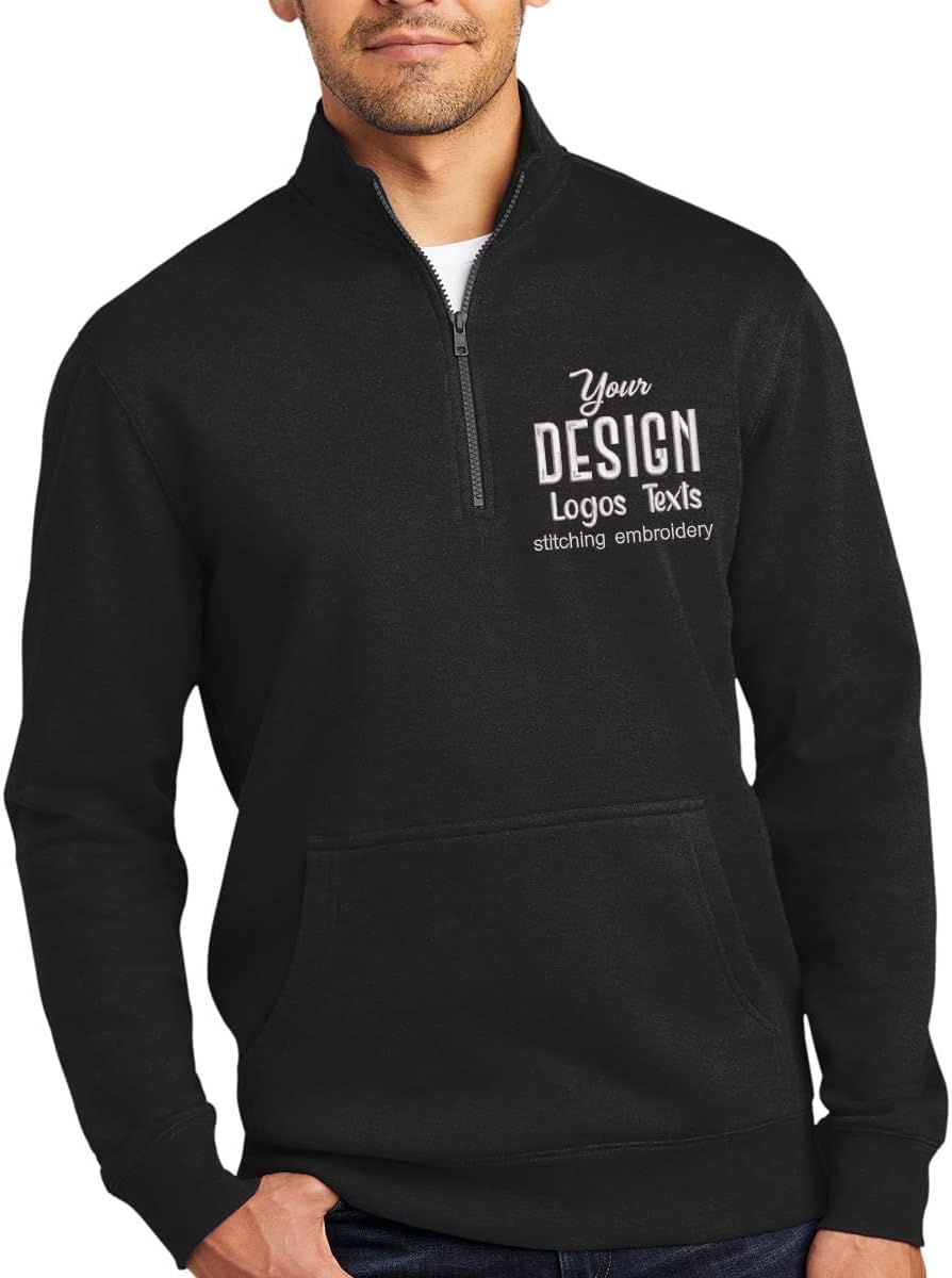 Custom Stitching Embroidery Logo Text Half zip up, 65.35 Right spun cotton and Polyester Front pouch Pocket Fleece inside