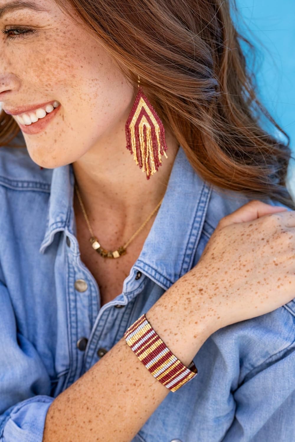 Step up your game day style with the INK+ALLOY Luxe Beaded Fringe Earrings! These stunning earrings are the perfect accessory for any sports fan looking to showcase their team spirit in a chic and fashionable way. Handcrafted with care, each earring features a cascade of vibrant beads in your favorite team colors, creating a bold and eye-catching fringe design that's sure to turn heads. Whether you're a current college student, proud alumna, dedicated teacher, or die-hard fan, these earrings are the ultimate way to elevate your game day look. The lightweight and comfortable design ensures all-day wearability, so you can focus on cheering your team to victory. Get ready to score major style points with the INK+ALLOY Luxe Beaded Fringe Earrings - the perfect blend of team spirit and trendy accessories!