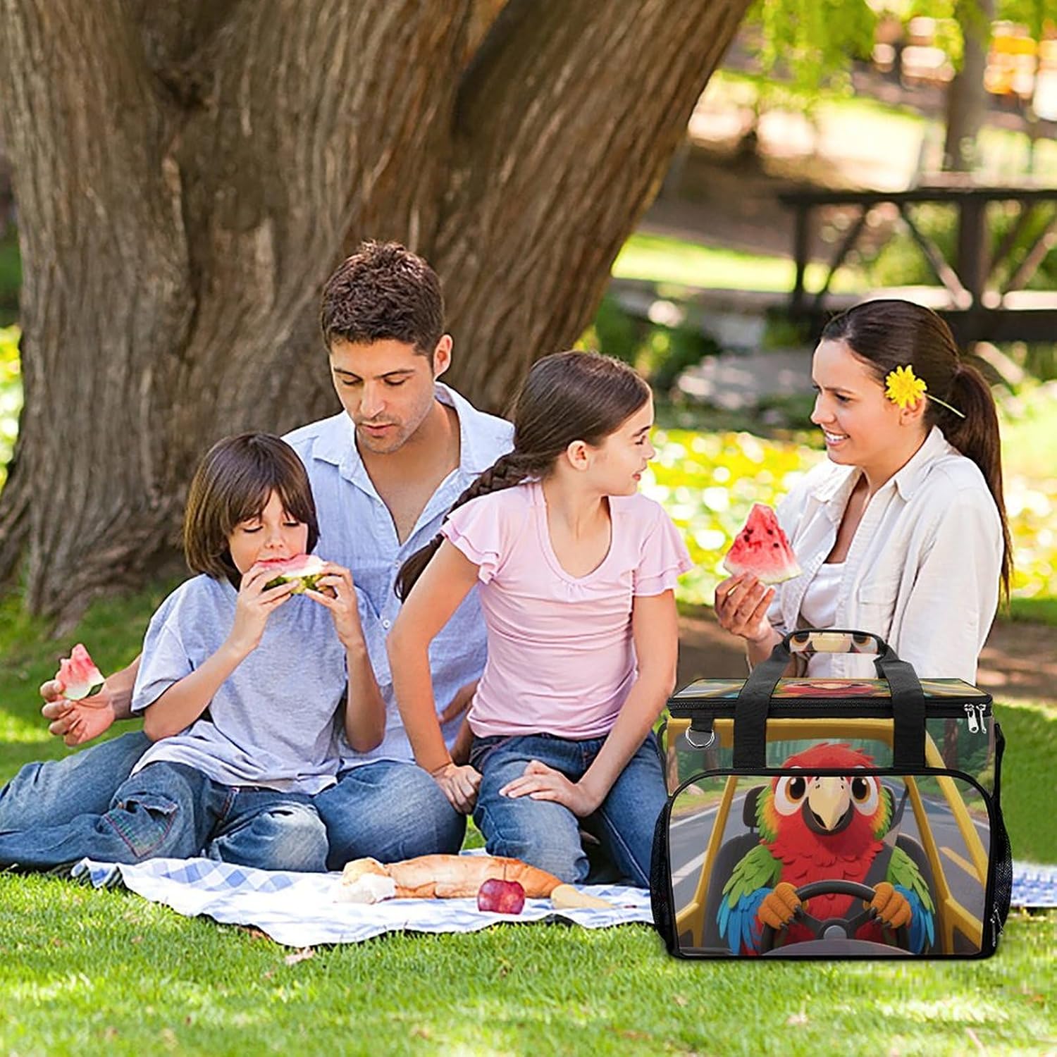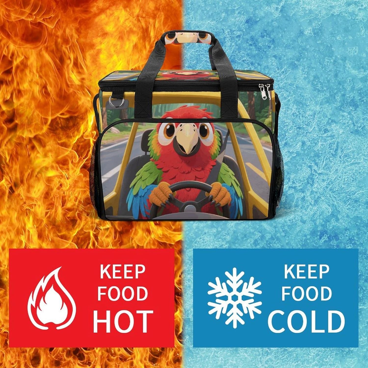 Take Your Meals Anywhere with Parrot Drives Grocery BagsFood Container Carrier Oxford Fabric Picnic Bag Heat Retaining Food Bag Camping Cooler BBQ Accessories Cute Picnic Bag with Pockets Insulated Food Bag for Work Insulated Lunch Tote Bag Camping BagTemperature Control That WorksThe upgraded aluminum foil lining creates an effective thermal barrier. Your drinks stay refreshingly cold, and your hot dishes maintain their warmth for hours. No more lukewarm meals during outdoor outings.Thoughtful Storage DesignTwo side mesh pockets - Perfect for water bottles or umbrellasFront zippered pocket - Keeps keys, phone, or condiments organizedInternal mesh pocket - Stores utensils, napkins, and small essentialsMain compartment - Spacious enough for food containers and snacksBuilt for Daily AdventuresConstructed from high-density oxford fabric with reinforced stitching at stress points. The double zippers are sturdy and smooth-operating. Reinforced handles let you carry heavy loads with confidence.Carry Your WayHandles for quick grabbingStands upright for easy packing and accessPerfect For:Picnics in the parkBeach days and pool partiesCamping and hiking tripsOutdoor concerts and festivalsDaily work lunchesGym and fitness classesRoad trips and travelGrocery shoppingSpecifications:Dimensions: 15.4 x 11.8 x 11.8 inchesMaterial: High-density Oxford fabricLining: Aluminum foil (insulated)Closure: Sturdy double zippersPockets: 2 side mesh, 1 front zipper, 1 internal meshCare: Hand wash or machine wash, do not bleachNote: Food containers and utensils shown in images are not included.