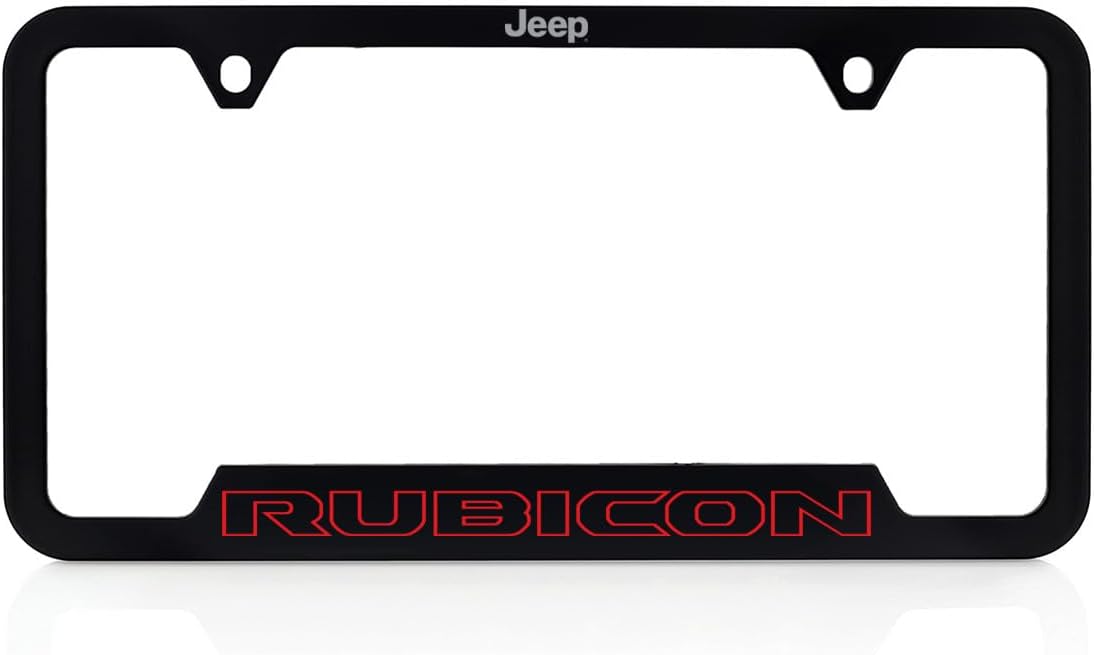 Jeep Rubicon Black Coated Metal License Plate Frame with Exposed Chrome Logo