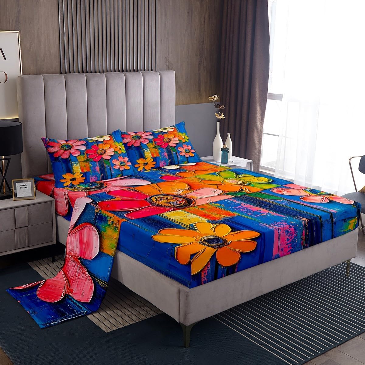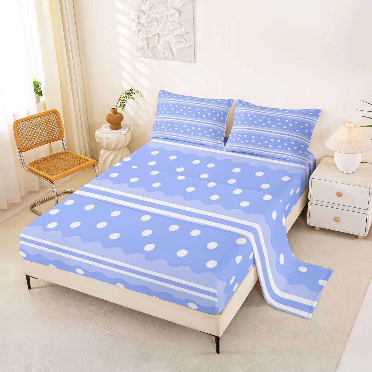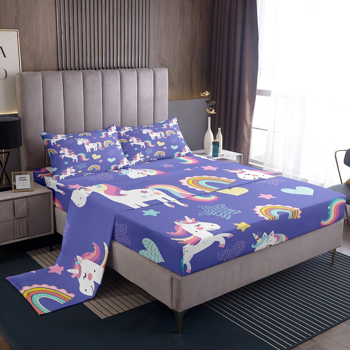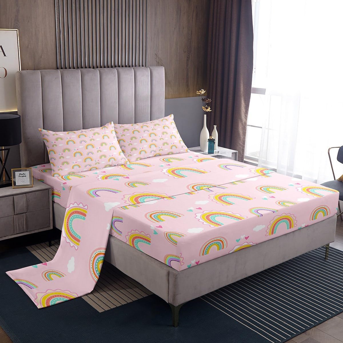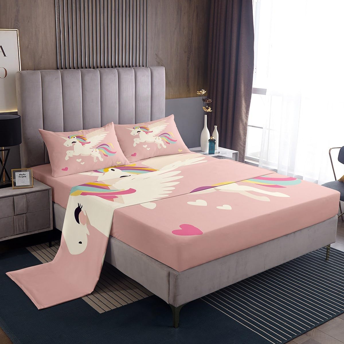 Our bed sheet is made of polyester fabric, lightweight and soft; stylish design is very suitable as room decoration for boys and girls; keep warm in winter and cool in summer; create a comfortable sleeping environment to make you fall asleep all night Range of size 1 twin fitted sheet 39 inch x 75 inch x 16 inch and 1 twin flat sheet 66 inch x 96 inch and 1 standard pillowcase 20 inch x 30 inch 1 full fitted sheet 54 inch x 75 inch x 16 inch and 1 full flat sheet 81 inch x 96 inch and 2 standard pillowcase 20 inch x 30 inch 1 queen fitted sheet 60 inch x 80 inch x 16 inch and 1 queen flat sheet 90 inch x 102 inch and 2 standard pillowcase 20 inch x 30 inch 1 king fitted sheet 78 inch x 80 inch x 16 inch and 1 king flat sheet 90 inch x 106 inch and 2 standard pillowcase 20 inch x 36 inch