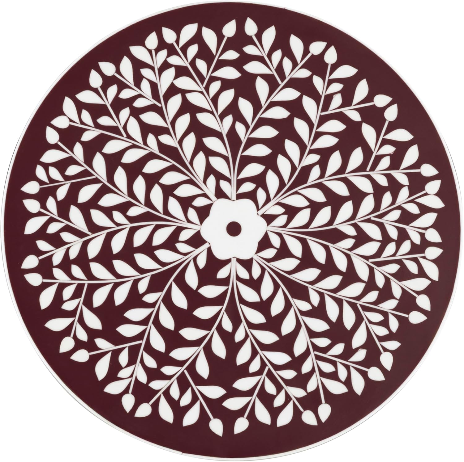 Show off your favorite plants or serve cocktails on our global-inspired pedestal stand. The modern design features an inlay resin top with a vine pattern and a sleek, sturdy metal base. This designer accent table is a chic addition to the living room, dining room or bedroom.