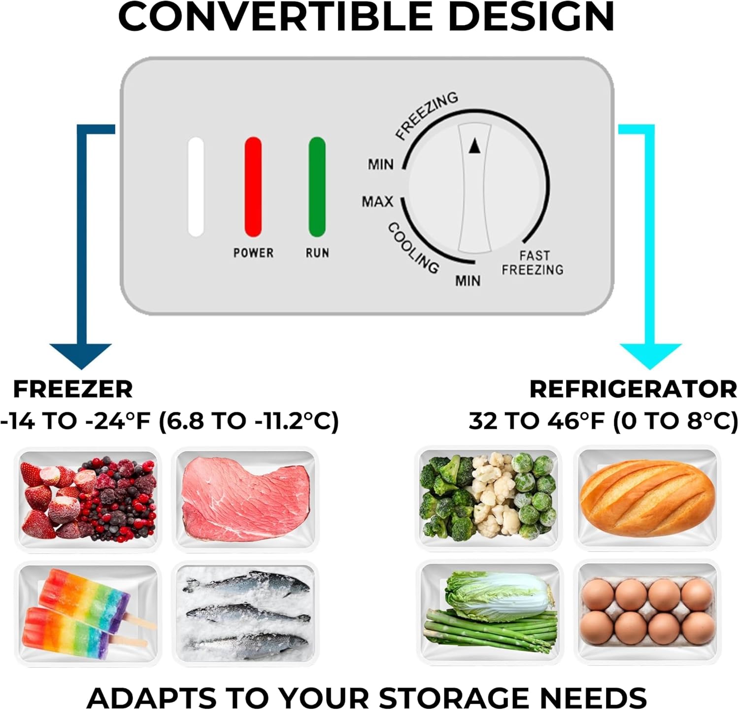| Included Components | Convertible freezer/fridge; 2 x hanging baskets |