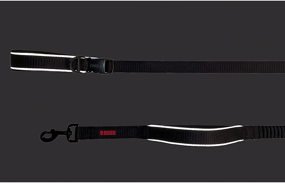 This KONG Shock Absorbing Hands-Free Dog Leash may be used as a traditional leash, or may be worn as a waist strap to keep your hands free. It also features bungee cord to help when your dog starts pulling. Features: Made with exceptionally strong thread to help resist chewing and tearing. Can be used as a traditional leash or worn as a waist strap for hands-free convenience. Waist strap can be cinched for temporary tie-out in dog-friendly public spaces, such as cafes and restaurants. Traditional leash with traffic handle for increased control when needed. Shock-absorbing bungee cord to help with pulling. 6' Long x 1" Wide with Neoprene-lined, comfort-grip handles.