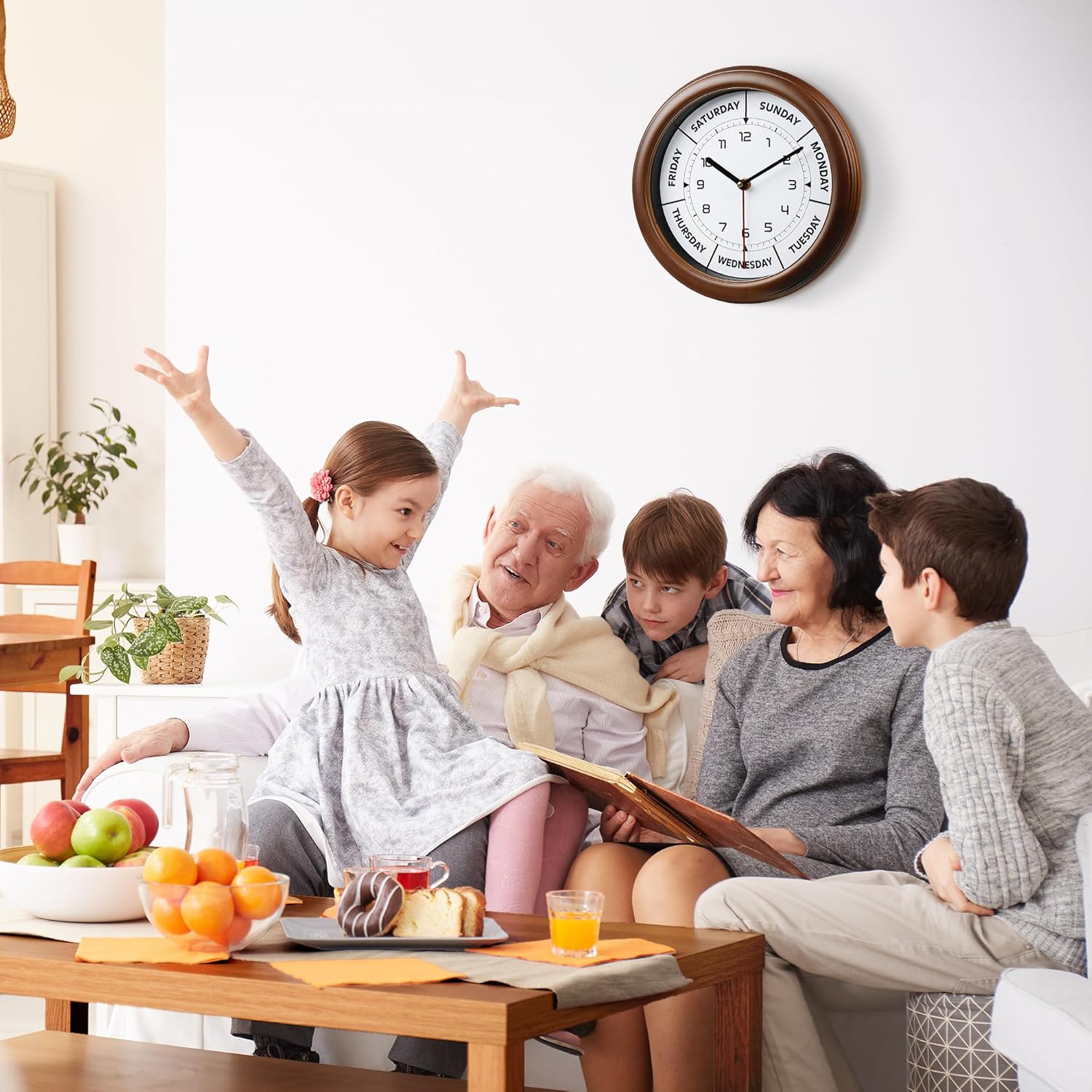 | Additional Features | shows day of the week, silent sweep movement, wood frame |
