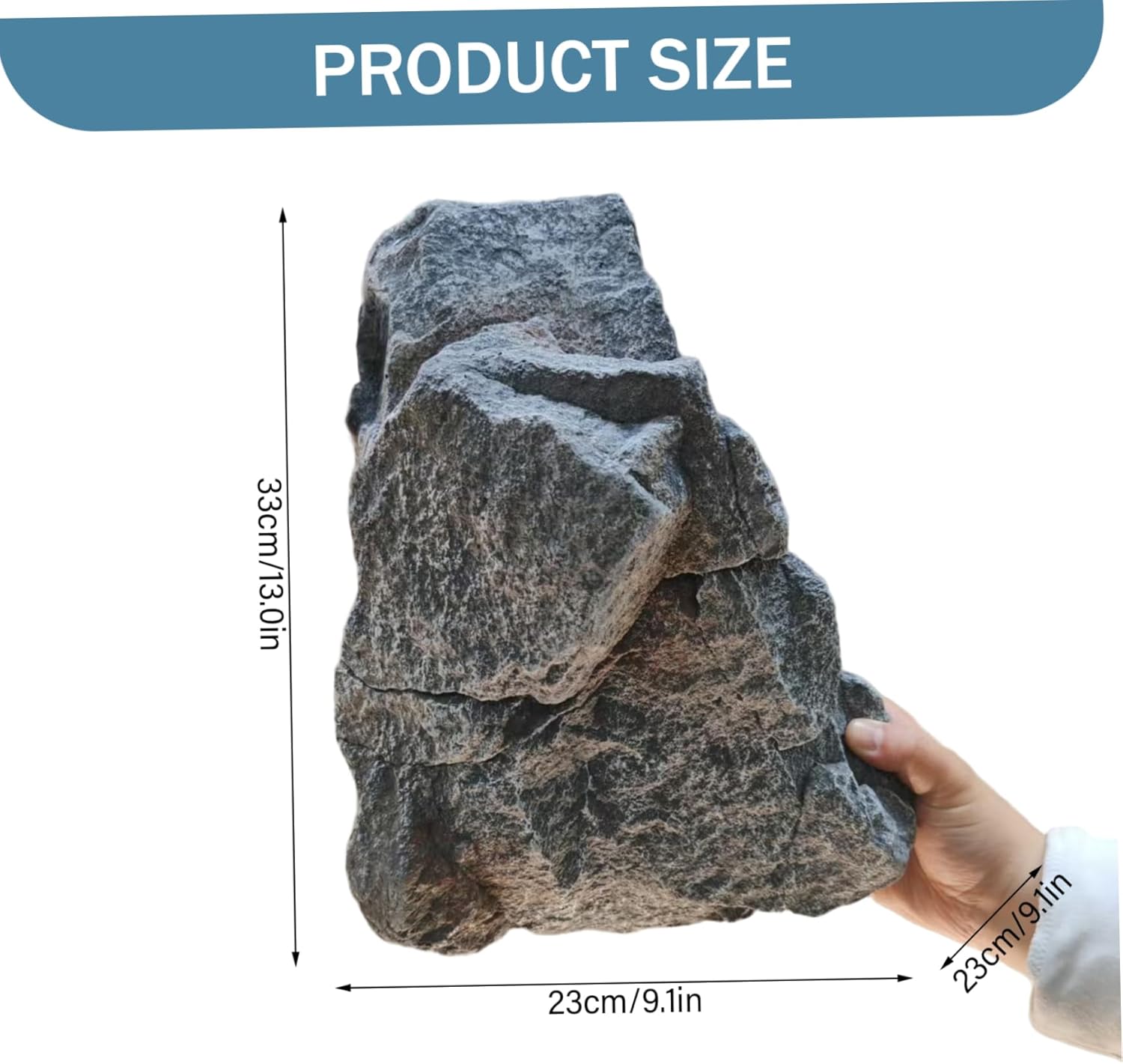 Description: Elevate your landscaping with our realistic artificial rocks. Designed to mimic the rugged beauty of natural stone, these grey faux rock covers provide an instant upgrade to your environment without the hassle or permanent commitment of heavy materials.Crafted from high-quality PU foam, each landscape rock is both and surprisingly lightweight. This makes them incredibly easy to position around your garden, along walkways, beside ponds, or on slopes. You can create stunning visual interest in minutes. Their versatile design also makes them perfect for commercial use in parks, hotel grounds, exhibition booths, or restaurant patios.Unlike real stones, these artificial rocks require minimal upkeep. They are resistant to weather elements and can be easily cleaned with water if needed. The natural-looking texture and color blend seamlessly with outdoor settings, making a cohesive and polished look.Whether you're covering unsightly utility features, creating a desert-themed aquarium, or adding texture to a courtyard, these PU foam rocks make a practical and aesthetically pleasing solution. Reimagine your space with decoration that combines realism with convenience. Features:. -Color: Grey. -Material: PU foam. -Size: 33x23x23 cm/13x9.1x9.1 inch. Note:Manual measurement, please allow slight errors on size.The colors may exist slight difference due to different screens. Package Including 1 * Foam Rock