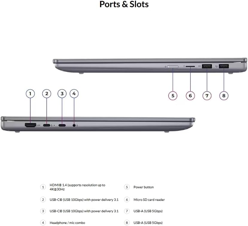 Designed to adapt to any task, the Lenovo IdeaPad 5 2-in-1's 360-degree hinge allows for flexible use in laptop, tablet, tent, or stand modes. Warranty:1 Year Courier or Carry-in Processor: Processor:AMD Ryzen AI 7 350 Processor (2.00 GHz up to 5.00 GHz) Memory:16 GB LPDDR5X-7500MT/s (Soldered) Storage: 512 GB SSD M.2 2242 PCIe Gen4 TLC Display: Touchscreen 16" WUXGA (1920 x 1200), IPS, Glare, 45%NTSC, 300 nits, 60Hz, Glass Camera: 1080P FHD IR Hybrid with Dual Microphone and Privacy Shutter Battery: 57Wh Rechargeable Li-ion Battery, supports Rapid Charge Boost (get 2 hours of runtime with a 15-minute charge) Digital Pen Connectivity: Wi-Fi 7 2x2 BE 160MHz & Bluetooth 5.4 Graphics: Integrated AMD Radeon 860M Keyboard: Backlit, Luna Grey - English (US) QWERTY Docking Options: Various docking solutions supported via USB-C Ports: 1x USB-A (USB 5Gbps / USB 3.2 Gen 1) 1x USB-A (USB 5Gbps / USB 3.2 Gen 1), Always On 2x USB-C (USB 10Gbps / USB 3.2 Gen 2), with USB PD 3.0 and DisplayPort 1.4 1x HDMI 1.4b 1x Headphone / microphone combo jack (3.5mm) 1x microSD card reader Dimensions:14.02 x 10.03 x 0.72 inches Weight: Approximately 4.41 lbs Color: Cosmic Blue Operating System: Windows 11 Home 64