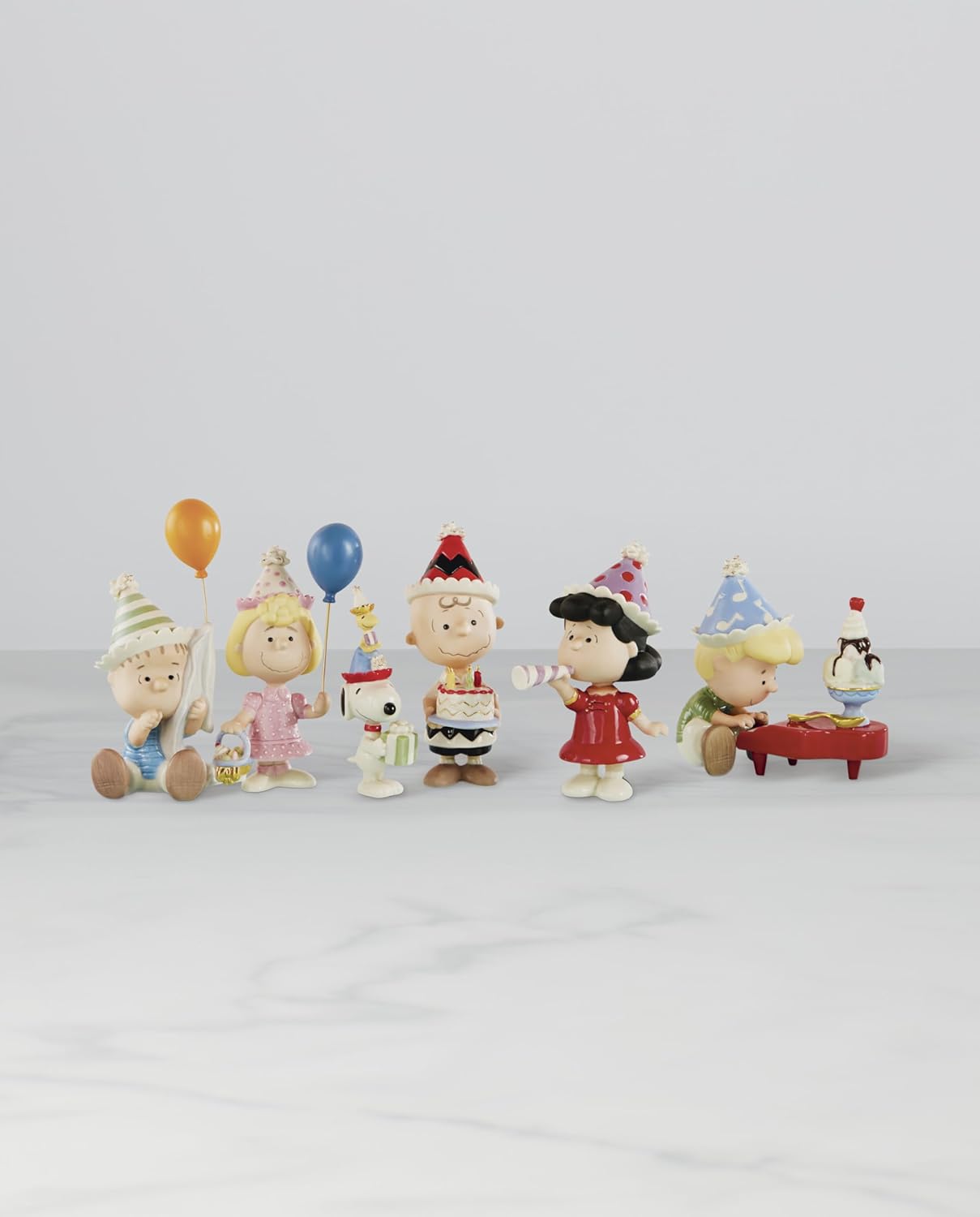 Charlie Brown, Lucy, Linus, Sally, Schroeder, Snoopy, and Woodstock are ready to help you celebrate your birthday! All masterfully crafted in ivory china, this adorable figurine set is meticulously hand-painted and accented with gold. Makes a great gift for the whole family!