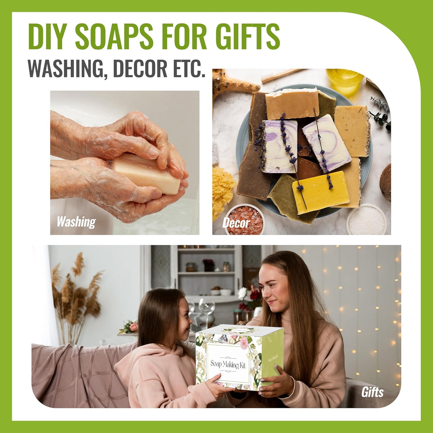 Unleash Your Inner Artisan with Our Easy Melt & Pour Soap KitDive into the rewarding world of DIY crafts and treat your skin to something truly special. Our all-in-one Melt & Pour Soap Making Kit is the perfect way to start creating beautiful, handcrafted soaps right at home. No experience neededโjust pure, creative fun!Why You'll Love This Kit:Create Personalized, Skin-Loving SoapMade with a gentle, glycerin-rich soap base, our formula is ideal for sensitive skin. You control the ingredients, ensuring a pure, natural clean for you and your family, free from harsh chemicals and dyes found in many store-bought soaps.Incredibly Simple & Fun for EveryoneThe process is a breeze: melt, mix, pour, and unmold. It's a fantastic and engaging activity for parents and kids, crafters, or anyone looking for a creative outlet. See stunning results in just a few easy steps!Craft the Perfect GiftPour your heart into a unique, handmade creation. Whether for a birthday, holiday, or just to show you care, a custom-made soap bar is a thoughtful and personal gift that friends and family will truly appreciate.Everything You Need in One BoxWe provide the essentials so you can start crafting immediately. Your kit includes a premium melt & pour soap base, vibrant colorants, soothing fragrances, professional-grade molds, and easy-to-follow instructions.We provide the essentials so you can start crafting immediately. Your kit includes a premium melt & pour soap base, vibrant colorants, soothing fragrances, professional-grade molds, and easy-to-follow instructions.Ideal For:Beginners exploring DIY & craftsFamilies seeking a fun projectIndividuals looking for natural skincare alternativesAnyone in need of a unique and heartfelt gift ideaYour Creativity, Our KitโMake It Beautiful!We are committed to providing high-quality materials and an enjoyable crafting experience. Our customer support team is here to help if you have any questions.Click "Add to Cart" now and start your soap-making adventure today!