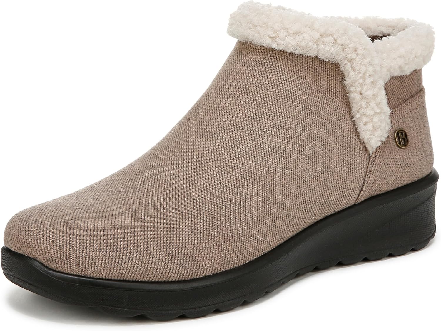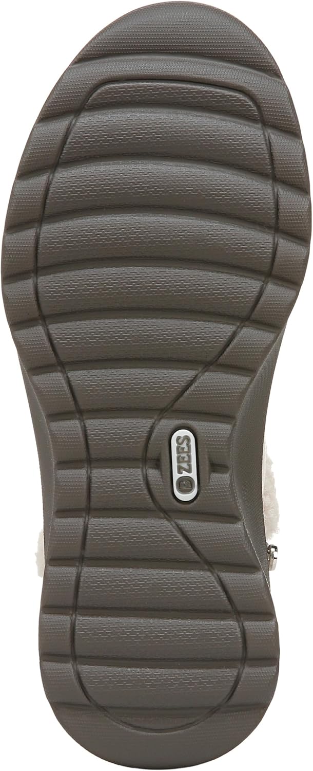 Stay cozy, stay clean! Say hello to the machine washable boots with a fuzzy touch. You’ll never meet an ankle bootie quite like these. Stretch twill fabric upper with partially recycled linings and top cloth with a round toe. Side zipper and cozy collar. BLOOM™ materials: Eco-conscious algae-infused foam layer under the insole. BZEES Cloud Technology: Designed so you’ll feel weightless, energized and free. Ultra Lightweight: Step lightly with a nearly weightless feel. Dynamic Stretch Fabrics: Move freely in shoes with built-in stretch. FreeFoam™ Comfort: Low pressure insoles with maximum foot contact and cushy arch support. 2.87 inch boot height, 10.24 inch leg circumference. 5/8 inch platform, 3 1/8 inch wedge heel. EVA outsole. Get Width It: Countless pairs of Bzees come in wide width shoes for women. Machine Washable: Wash on cold and air dry.