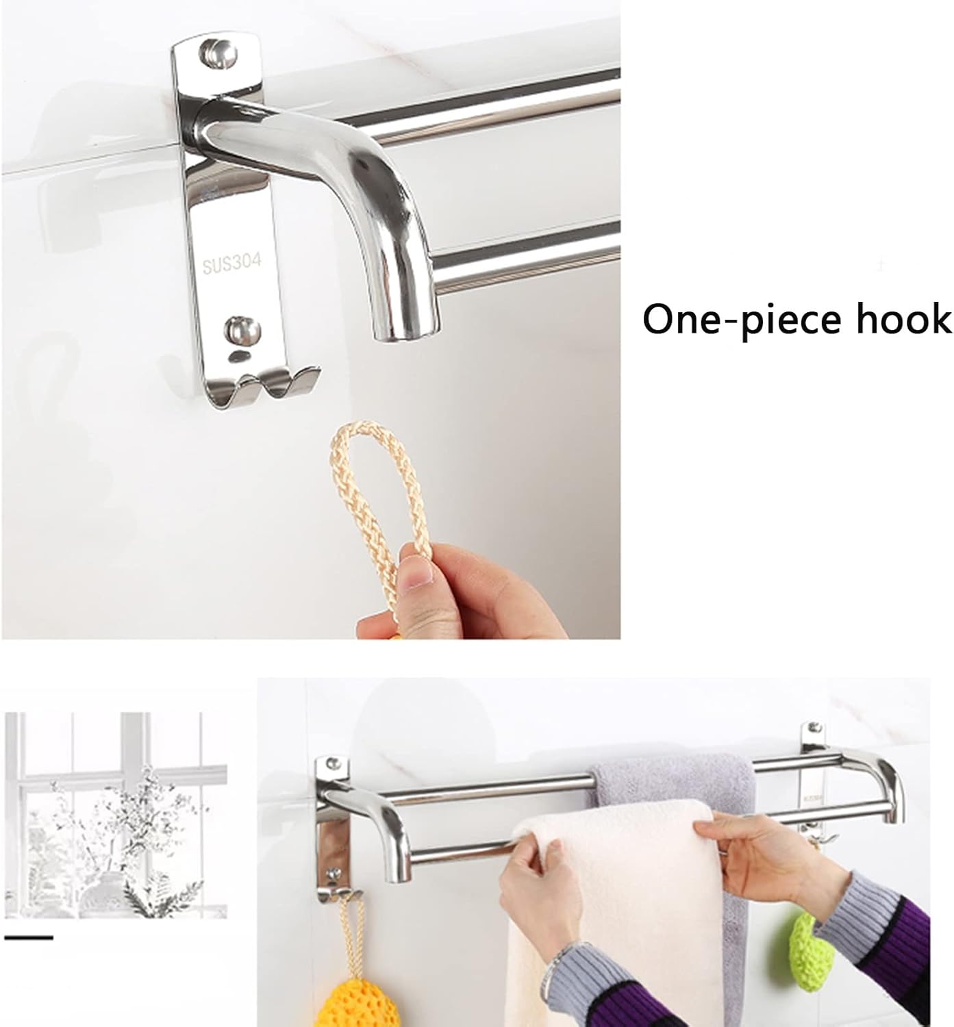 The Stainless steel towel rack is well hanging and organizing your face towel, bath towel and clothes in order in your bathroom ,balcony or kitchen.It is a simple, beautiful and practical towel rack hanger, which is made of durable stainless steel materials.With the included installation parts, you can easily install the towel rack on the wall to save space.It is suitable for various scenes such as bathrooms, bathrooms, kitchens, entrances, living rooms, bedrooms, etc. in family hotels.Easy to install and looks very modern and attractive in the bathroom. Can be used to hang towels, bathrobes and clothesnotes:1、Please do not install this product on fabric, wallpaper or other soft or uneven surfaces.2、If you have any questions, please feel free to contact our customer service.