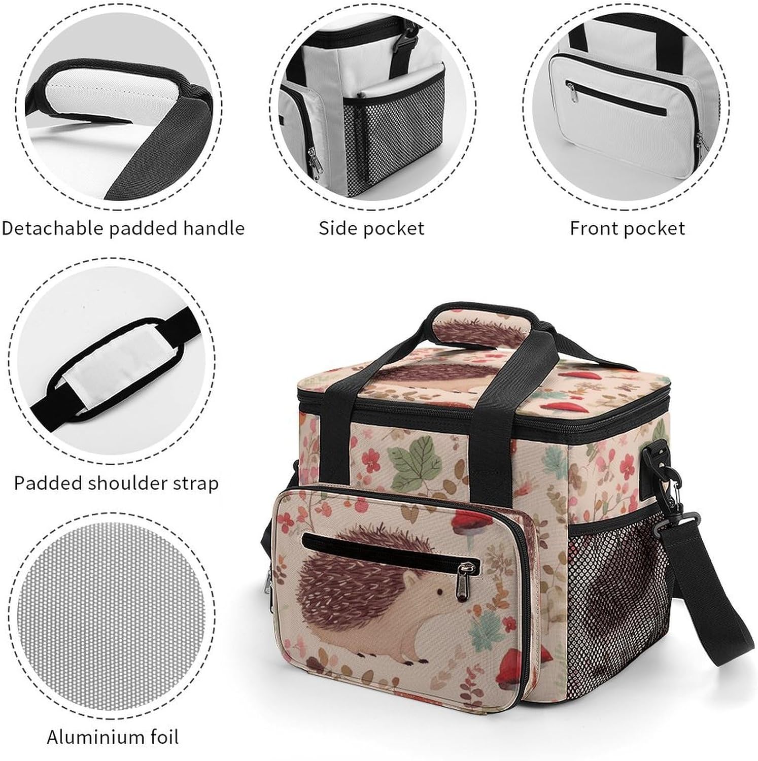 When you're looking for a reliable way to keep your food and drinks fresh while on the move, our Lovely Hedgehog insulated cooler tote is the perfect solution. Made from high-density Oxford cloth with an upgraded aluminum foil lining, it offers superior insulation that maintains the temperature of your items for hours. The leakproof design ensures no messy spills, and the sturdy construction means it can handle the rigors of daily use, whether you're commuting to work or heading out for a weekend camping trip.The 22.5L large capacity provides ample space for all your essentials, from sandwiches and salads to cans of soda and bottles of water. The comfortable 66cm straps make it easy to carry, and the compact vertical design doesn't take up unnecessary space in your car or backpack. Whether you're packing a meal for the office, preparing for a family picnic, or stocking up on groceries, this cooler bag has you covered.Forget about flimsy coolers that fall apart after a few uses or fail to keep your food fresh. Our reusable cooler tote combines practicality, durability and style in one package. Its neutral design works for everyone, and its versatility makes it a must-have accessory for anyone with an active lifestyle. Invest in a cooler bag that meets all your needs and simplifies your on-the-go eating experience. Lightweight Cooler Bags Oxford Cloth Cooler Bags Ice Packs Reinforced Handle Ice Chest Cooler Bag Tote Cooler Bag Versatile Cooler Bags Portable Insulated Cooling Everyday Cooler