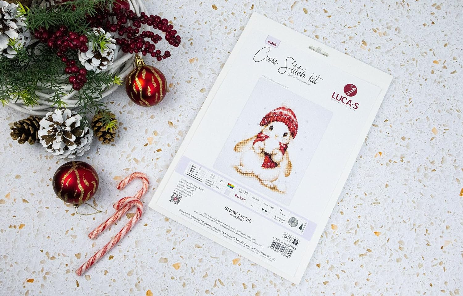 | Included Components | Aida cloth, 100% cotton threads (23 colors), Pattern chart (84 x 101 stitches), Needle (not explicitly stated but typically included in cross stitch kits) |