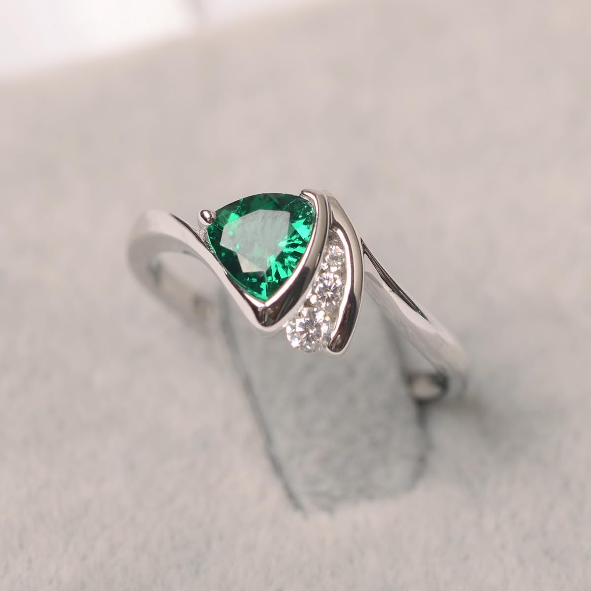 Product Specifications: Ring Height: Approx. 4.5mm (from finger to top of gemstone) Width: Tapered from 2.3mm to 1.6mm Metal: Rhodium-Plated 925 Sterling Silver All Ring Size: 3-13 This 6x6mm trillion cut birthstone ring is also available in various sizes to meet your needs. Gift Package Available-comes in a pink velvet ring box tied with a bow—gift-ready.