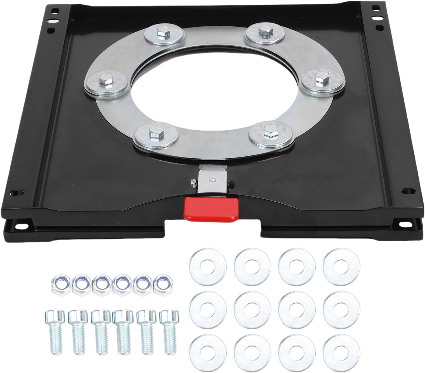 1. HEAVY DUTY CONSTRUCTION: The seat swivel base is crafted from carbon steel and hot rolled steel, ensuring exceptional strength and durability. It can withstand vibrations, bumps, and high load capacities during prolonged use, making it built to last. 2. SECURE AND STABLE DESIGN: The heavy duty swivel plate is designed for stability, effectively securing the seat during vehicle operation. This ensures the safety and comfort of all passengers, providing peace of mind while on the road. Specification: Item Type: Seat Swivel Base Material: Carbon steel+hot-rolled steel Base Size: 440 x435 x 47mm /17.32x17.12x1.85in (there may be errors in manual measurement, actual dimensions shall prevail) Rotation Angle: 0-360 degrees Rotation Direction: Either forward or reverse Application: The locking handle is positioned at the front center and can be rotated to swing in any way, making it a universal left hand or right hand seat and suitable for drivers or passengers. Fitment: Replacement for Ducato, replacement for BOXER, replacement for Relay X250 X290 model from 2006/7 onwards. For Campervan Motorhome Installation Instructions: 1. Determine the position where the seat base will be installed and clean the surface properly 2. Mark the location where the hole is to be drilled and use a drilling tool to drill the hole 3. Fix the seat base in the installation position and secure it with screws 4. Install and fix the seat on the base to complete the installation How to Use: Installation is somewhat difficult, and it is strongly recommended to seek the assistance of professional engineers to ensure an excellent shopping experience. Please pay attention to safety during the installation process. PackageList: 1 x Swivel Base 6 x 6 x Nut 12 x Gasket