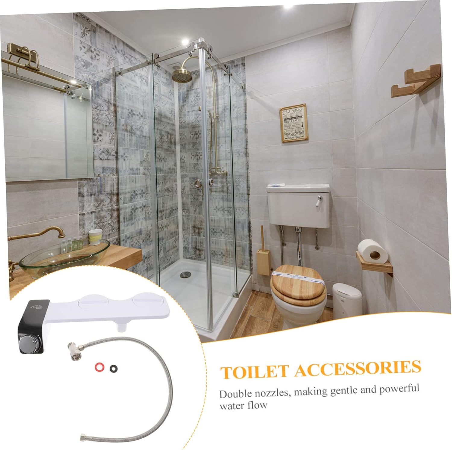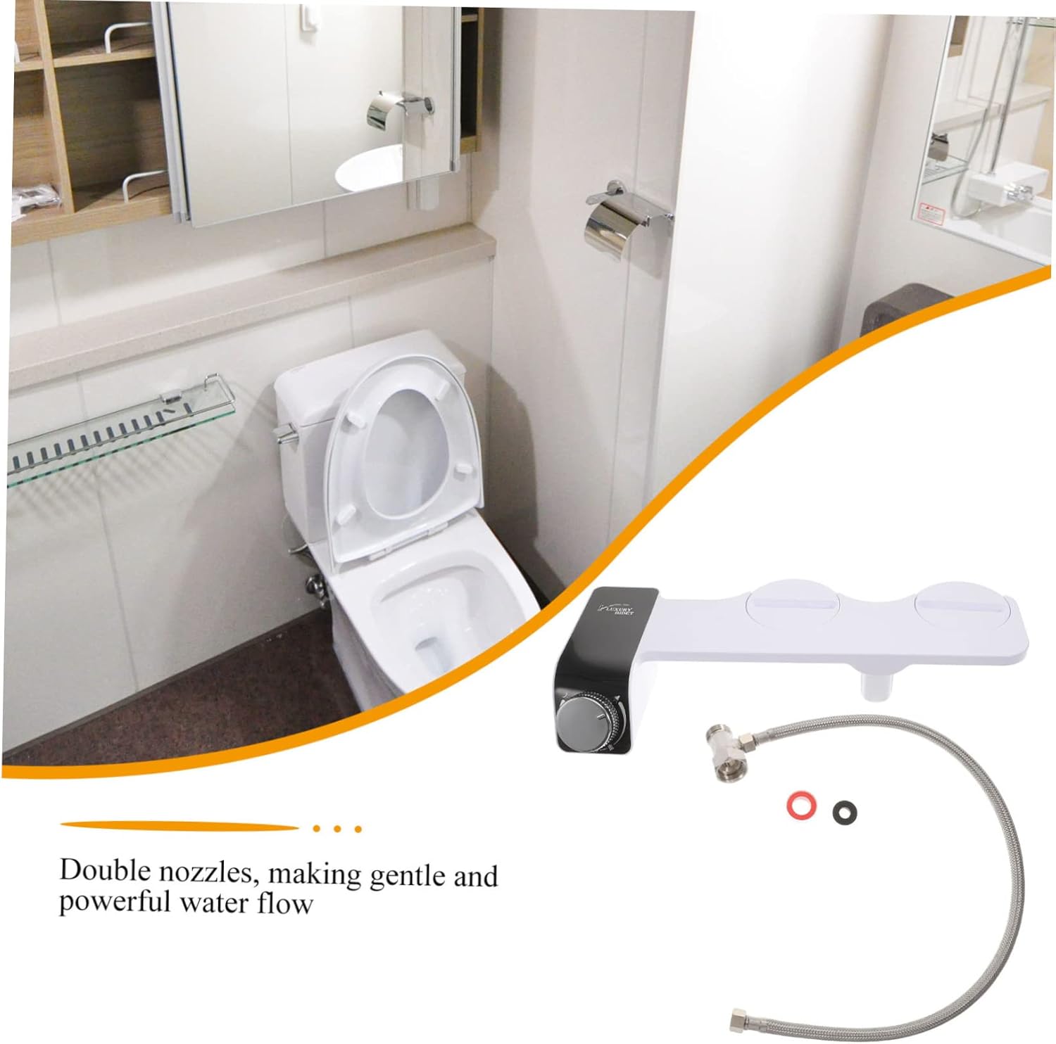 Package Include 1 x bracket 1 x hose 1 x connector 1 x fixing ring 1 x gasket Characteristics -Size:40.00X18.00X6.00cm,64.00X1.50X1.50cm,5.00X2.60X2.60cm,2.50X2.50X1.50cm,2.00X0.50X0.50cm/15.72X7.07X2.36in,25.15X0.59X0.59in,1.97X1.02X1.02in,0.98X0.98X0.59in,0.79X0.20X0.20in bidet toilet attachment -Color:White toilet water spray -Material:Plastic bathroom gadgets -Compatible with most toilets sets, and . family and hotel use bidet attachment. -The unique self-cleaning function is designed to shield and guard your skin with every use portable bidet for toilet. -Non-electric, portable to use, and is more cost than an electric bidet toilet seat toilet seat attachment. -The bidet attachment for toilet is a convenient and wash your private parts bidet toilet seat. -It is simple appearance design, excellent and useful, for household bathroom use non-electric bidet attachment.Goods Descriptionbidet toilet attachment Simple and sturdy, smooth surface, The bidet attachment is easy to install and operate, bring much convenience to daily life, useful and reliable for your home.toilet seat attachment The bidet attachment is made of reliable material, ensuring its excellent durability, can be used for long time