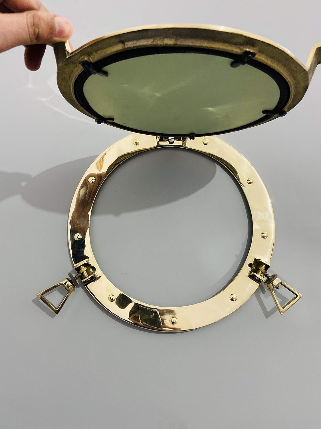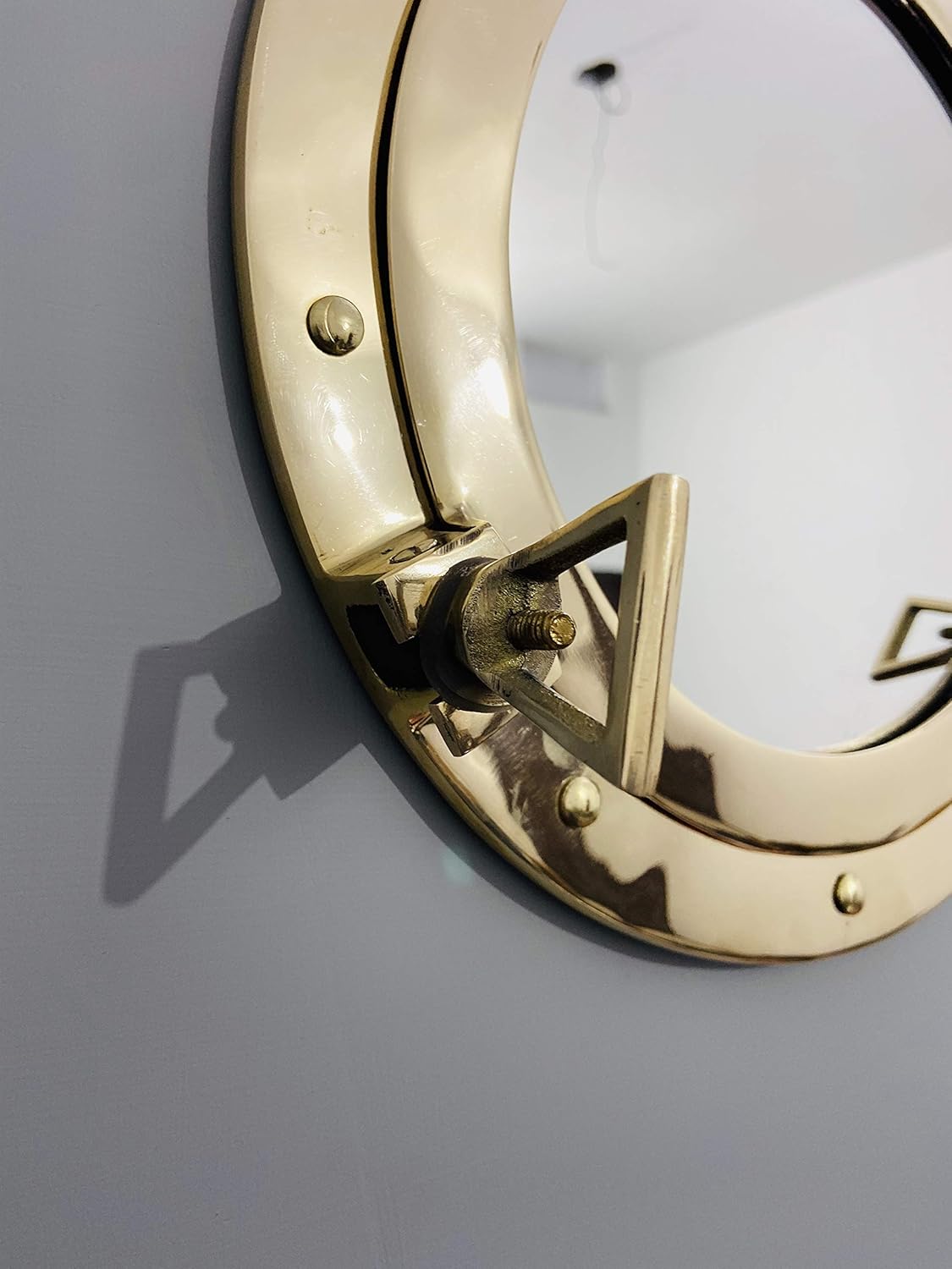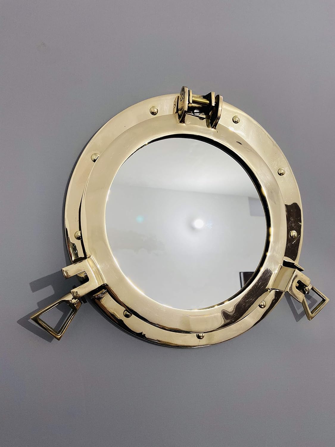 Add some vintage nautical style to your room with this nautical porthole wall mirror. 12” Brass Porthole Mirror in brass finish. functional piece to add to your home. Constructed from a durable brass material and featuring a smooth brass finish. All of our items are reproductions, handmade (HANDCRAFTED) by our master artisans who employ techniques (TOOLS) and traditions that are often centuries old. Some natural blemishes or imperfections are to be expected. These are not product flaws. Instead, they are precisely what make these pieces so extraordinary and beautiful.