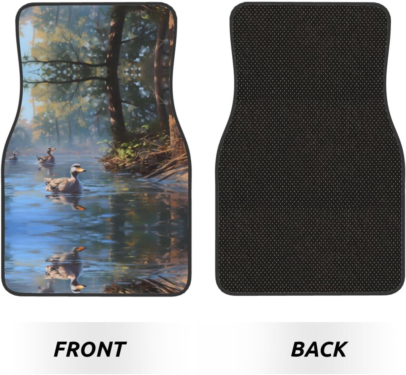 Add a touch of elegance to your car. Our Mallard ducks swimming Mallard ducks swimming printed car mats are light-resistant and stay colorful even in the hot sun. They are tightly woven, soft and firm to the touch, easy to clean, and can be easily rinsed to remove stains and keep your car clean. The drop-molding process on the bottom not only prevents dust from entering, but also simplifies the installation process. The non-slip design ensures stability in any driving situation, ensuring your safe driving. Suitable for a variety of models, whether it is a car, truck or van, this mat can perfectly blend with your interior style.