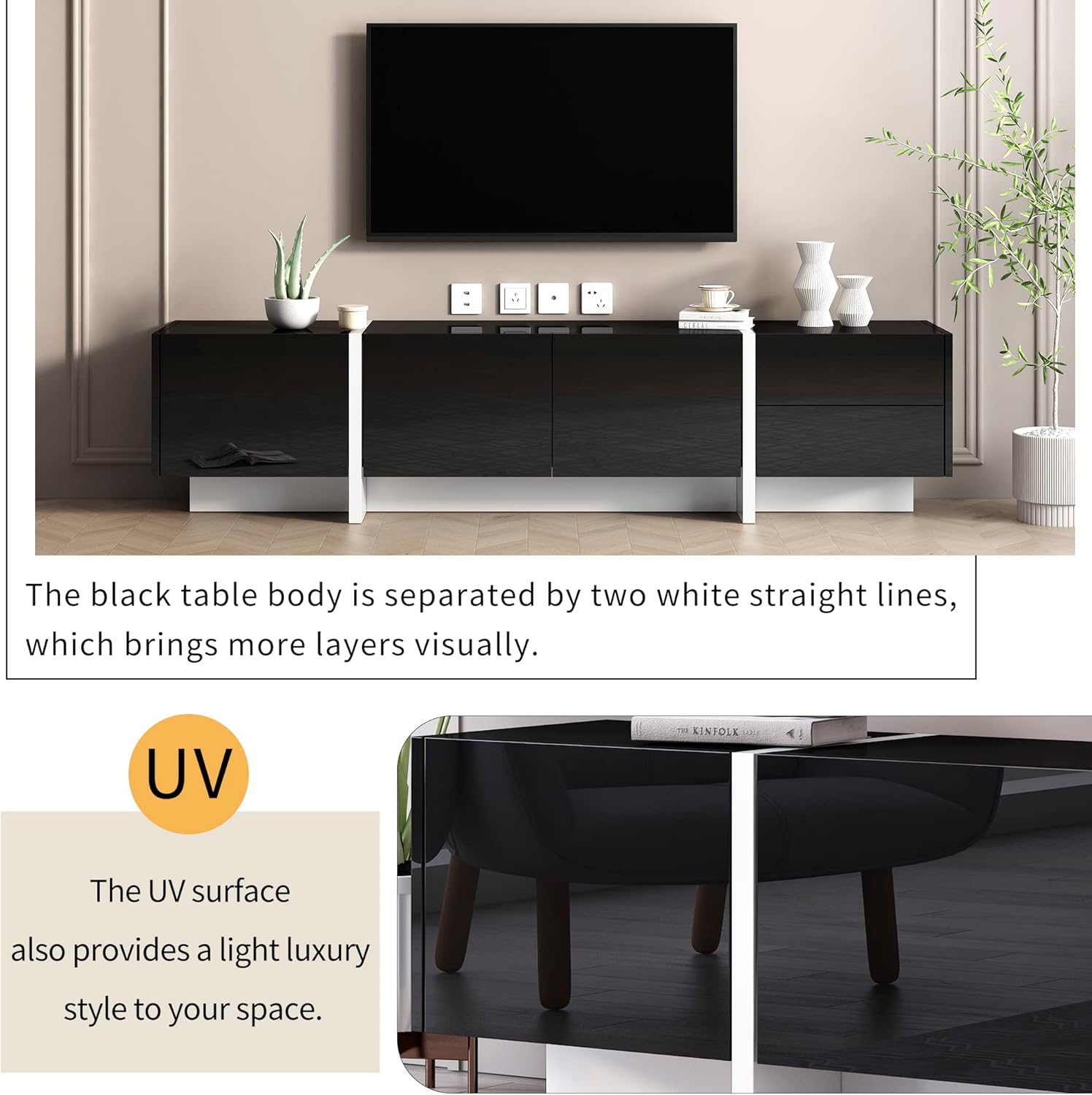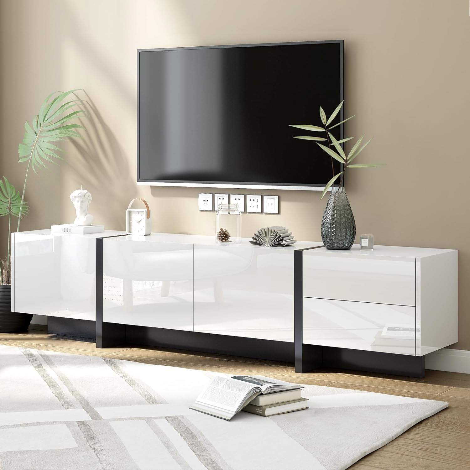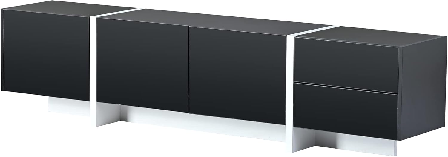 Product detailsProduct Type: TV standTop Material: Particle Board Top Finish Application: VeneerBase Material: Particle BoardBase Finish Application: VeneerWeight CapacityTable top:88LBSSide Cabinet:44LBSDrawer: 18LBSDetailed MeasurementOverall: 74.8”W x 13.7”D x 17.7”HSide Cabinet: 17.7”W x 12.4”D x 12.2”HDrawer: 15.7”W x 11”D x 3.1”HShelves Included: YesNumber of Shelves: 2Cabinets Included: esNumber of Cabinets: 3Drawers Included: YesNumber of Drawers: 2Drawer Glide Mechanism: Metal GlidesDrawer Glide Material: MetalCountry of Origin: China Table Top Thickness: 0.59inch Level of Assembly: Full Assembly NeededSuggested Number of People for Assembly/Install: 2Estimated Time to Set Up: 1 hAdult Assembly Required: YesAdditional Tools Required (Not Included): Power Drill recommended