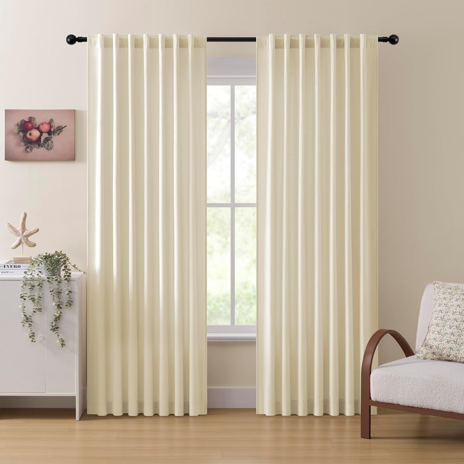 【FINE DETAIL】 Each curtain has 8 HOLES and the inside diameter of the GROMMET holes is 1.6 inches. And Every edge of the curtain is well sewn.