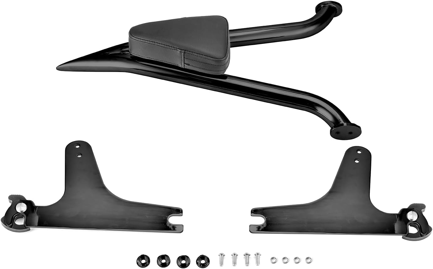 Fitment: Compatible with Fat Boy FLSTF 2007-2017 Compatible with Fat Boy Lo FLSTFB 2007-2017 Compatible with Softail Cross Bones FLSTSB 2007-later Compatible with Night Train FXSTB 2006-later Compatible with Softail Custom FXSTC 2006-later Compatible with Softail Standard FXST 2006-2017 Compatible with Springer Softail FXSTS 2006 later It will Compatible with models with 200mm rear tire fender only, It will not Compatible with the 150mm fender Specifications: Material: Solid Steel Color: Gloss Black Height: 22" Tube Diameter: 1.3" Style: Thick Tube With Sharp Angle Process: Triple(copper & nickel plating & black powder coated) Pad Cushion Material: PU Leather & Polyurethane Foam The passenger backrest has an innovative design, the upper part of the backrest is designed with sharp corners, full of vigor and aggressiveness With its sleek and modern design, this adds a stylish touch to your motorcycle that will turn heads on the road Package Included: 1 x Passenger Sissy Bar Backrest, 1 x Installation Instructions