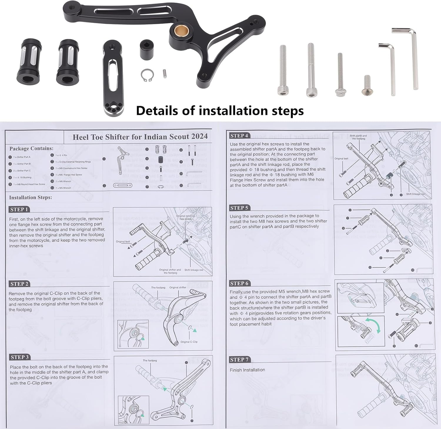 Description: Motorcycle Heel Toe Gear Shift Lever for Indian Scout & Scout Sixty (2015-2024) – Premium CNC-Machined Aluminum Shifter Material: Aluminum Condition: Brand New Color: Black Package Included: 1 brake pedal peg, 2 shift pegs for the shift lever, Accessories Features: ✔ Aluminum Construction- Durability and Lightweight ✔ Ergonomic & Stylish ✔ Precision Engineering-CNC-machined ✔ Easy Bolt-On Installation ✔ Perfect Fit for Indian Scout & Scout Sixty Fitment: For Indian Scout 2015-2024 For Indian Scout sixty 2015-2024