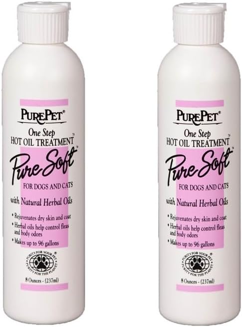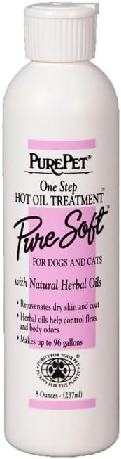 This pet care product is a skin and coat savior for dogs and cats with dryness. Its nourishing formula helps protect and soften their skin and coats, leaving them feeling pampered and revitalized. Our highly effective hot oil treatment gives your pet maximum relief from dry skin and coat. Formulated with natural herbal oils, this conditioning product can be used with any of our PUREPET shampoos, including Pure Pearl Shampoo, to rejuvenate and nourish your pet's skin and coat. Pure Soft Oil Treatment comes in an 8-oz bottle, which can make up to 96 gallons, delivering exceptional value in a small bottle. Available in 1, 2, 3, 4, 5 bottles or in a money saving full case of 12 Bottles!