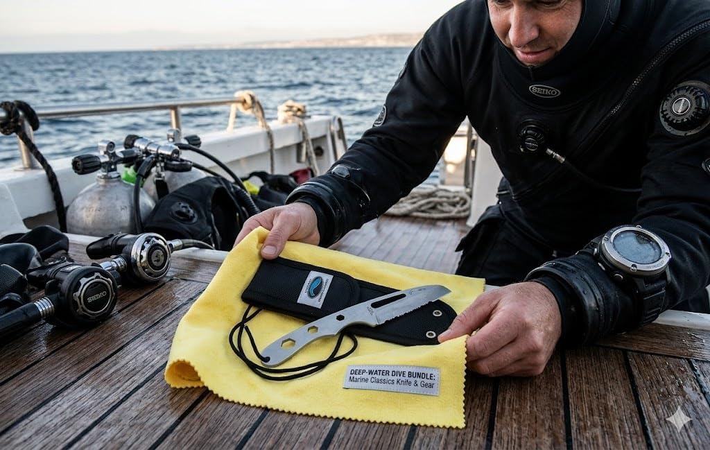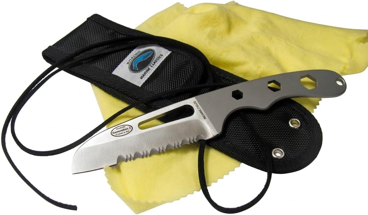 Elevate your marine gear with the Outdoor Merchants Exclusive Bundle, featuring the legendary Myerchin Generation 2 A510P Offshore Safety/Dive Pro Knife. This isn't just a knife—it’s a precision-engineered "line-cutting workhorse" designed for professional sailors, divers, and offshore riggers who demand absolute reliability in the harshest salt-water environments. The Power of Pro-Grade German Marine Stainless Steel Forged from a single solid bar of Pro-Grade German Marine Stainless Steel, the A510P is built for extreme durability and superior corrosion resistance. The 3.8-inch partially serrated sheepsfoot blade is optimized for emergency safety cuts and heavy-duty rigging, while the integrated handle features a shackle slot and three metric wrench sizes—giving you a versatile multi-tool that fits comfortably in your pocket or dive gear. Complete Marine Maintenance Kit Salt water is relentless, which is why we’ve bundled this professional blade with our Large 11" x 15" Silicone-Treated Polishing Cloth. Made from 100% premium cotton flannel, this yellow treated cloth leaves a protective, water-repellent film on your steel tools. It effectively prevents surface oxidation, removes fingerprints, and keeps your knife, reels, and tools in factory-fresh condition. Security & Style on the Water Every bundle includes a high-quality Leather Lanyard, providing a classic maritime aesthetic while ensuring your tool stays securely tethered to your wrist or gear. Whether you are working over the side of a vessel or performing a deep-water dive, you can trust your Myerchin knife to stay right where you need it. Why Choose the Outdoor Merchants Bundle? Single-Bar Forged Strength: Unmatched structural integrity compared to multi-piece handles. Integrated Multi-Tool: Handle-mounted shackle slot and metric wrenches for on-the-go adjustments. Rust Prevention Included: The silicone-treated cloth is a must-have for maintaining high-performance marine steel. Professional Utility: Trusted by sailors and safety professionals worldwide for its "no-fail" design. Technical Specifications: Blade Material: German Marine Stainless Steel Blade Length: 3.8 inches Features: Serrated Edge, Shackle Slot, Metric Wrenches Maintenance Cloth: 11" x 15" Silicone-Treated 100% Cotton Flannel Accessory: Genuine Leather Lanyard Equip yourself with the professional standard in offshore safety. Add the Outdoor Merchants Myerchin A510P Bundle to your kit today