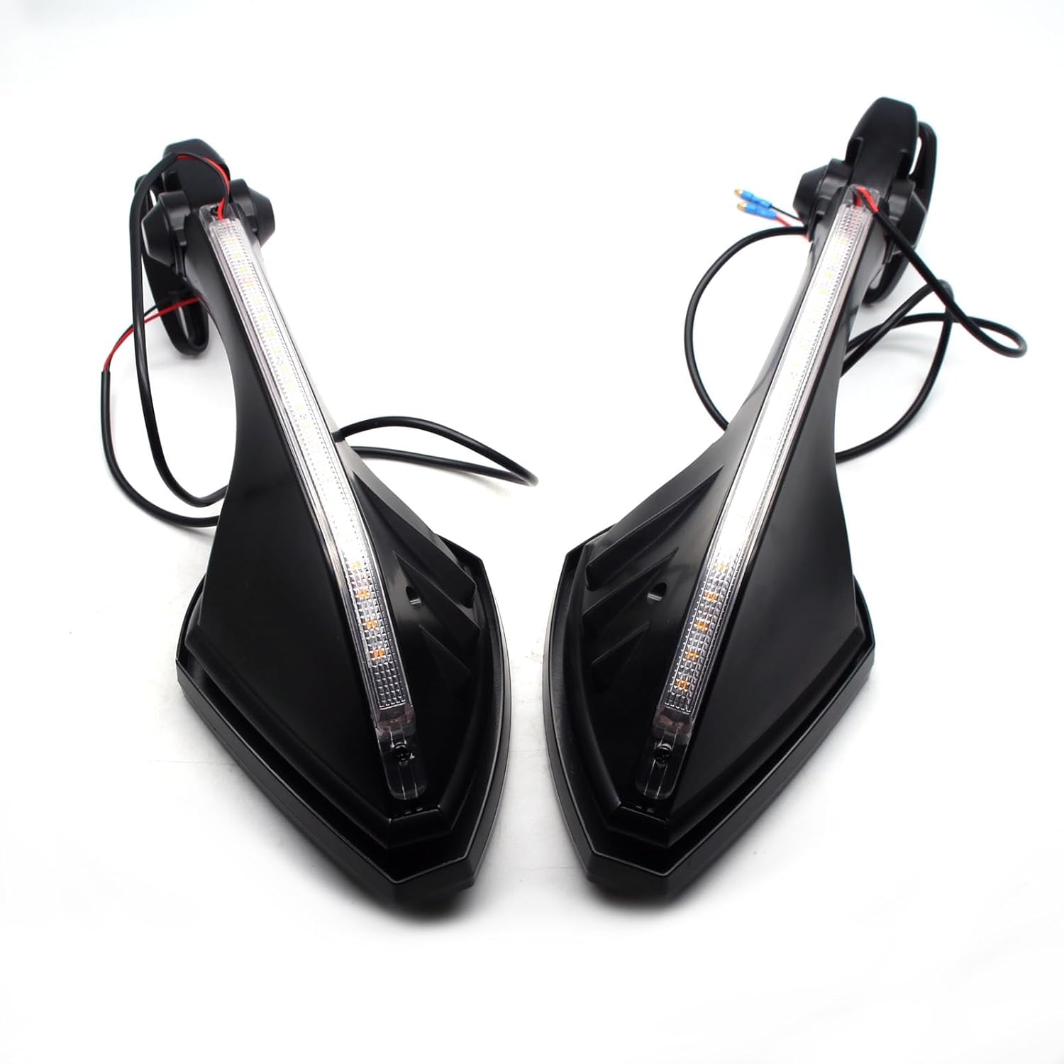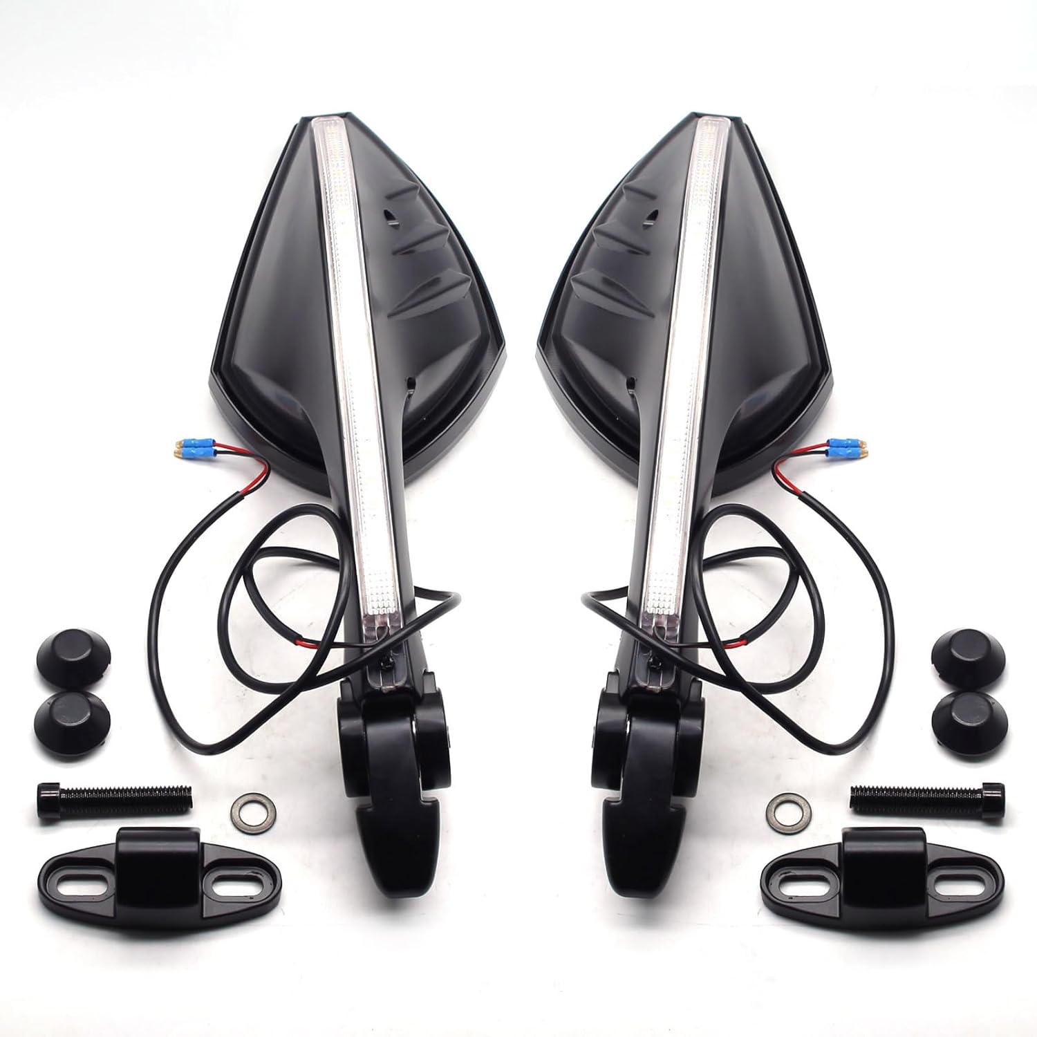 Specification: Material: ABS Injection Molded Housing, HD Glass and Aluminum Base Racing Motorcycle Mirrors type: Convex LED Lights Color: Amber Red Wire: Positive Black Wire: Negative Mirror Size: 5.9(L) x 3.93(W) Inch Mirror Weight: 2.02 Pounds Package Includes: 2 X Motorcycle Rear View Mirrors with Turn Signal 4 × Screws 2 × Rubber Mat 2 × Button 1 × Allen Wrenches Features: Consists of excellence ABS shell and HD Glass, it's more high-impact resistance and corrosion resistance, so it will live a long life The base can be liberty adjusted from left to right, and the ideal angle can be adjusted according to your riding needs Can see backward driving condition clearly while riding, avoid traffic accident Extremely Bright Long Lasting Turn Signals Direct bolt on to the stock mounting point, direct replacement, easy install Fitment: CBR 600 F4 F4I CBR500R CBR600RR CBR650R CBR900RR EX 250 300 400 650 ZX4R ZX4RR ZX6R ZX7R ZX10R ZX12R ZX14 ZX14R GSXR 600 750 1000 GSX1300R Hayabusa BANDIT 650 1250 GSX650F GSX1250F FZ6R 1125R VFR800F Z1000SX More for detailed applicable models, please refer to the "vehicle fitment list" or products description. Technical Support: MZS provides technical support. If your motorcycle mirrors have any problem or miss some accessories, please let us know, we will help you