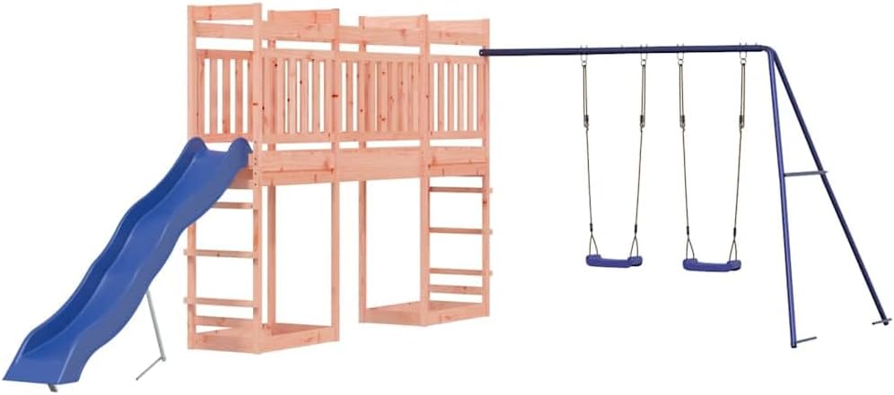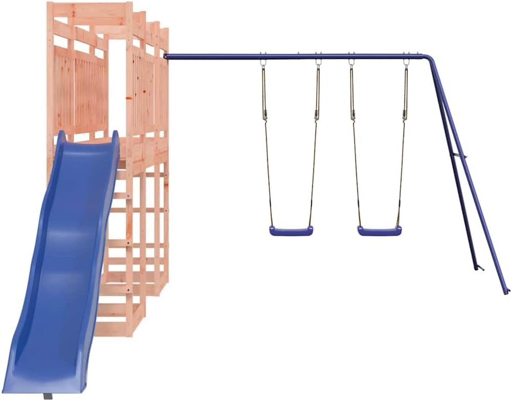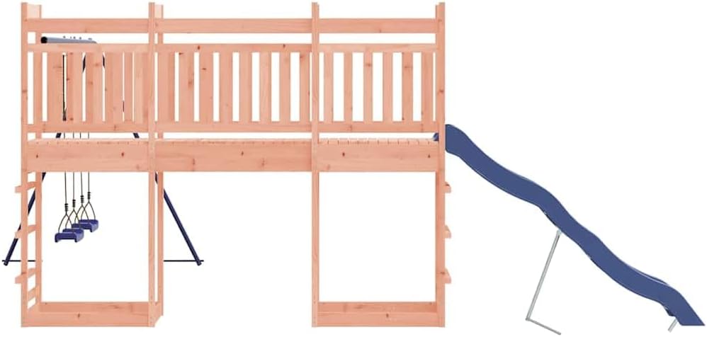 This Rustic Wooden Outdoor Playset for Kids is a super fun piece of playground equipment made for kids to have a great time playing in their own backyard. It has a fab mix of natural wood and blue bits, blending perfectly into the garden while adding a rustic touch.