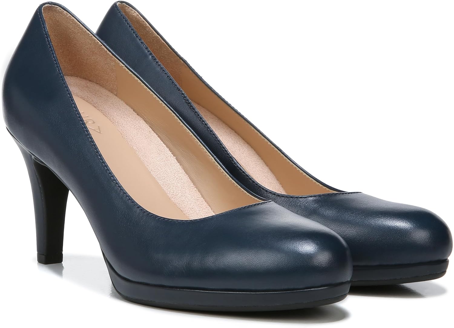 A classic wardrobe staple. Timeless elegance defines this women's pump with an iconic silhouette, scooped vamp, and wear-all-day heel. Get there beautifully. Sleek, all-day pump with walkable heel. Leather, patent leather, suede or fabric upper with closed round toe. Contour+ Comfort technology for a premium fit and all-day comfort experience. Non-slip outsole. 1/2 inch(es) platform, 3 inch(es) heel. Consciously packaged: 100% of our shoe boxes are made of 80% recycled paper + soy-based ink. WHY YOU’LL LOVE IT: Ingenious elegant utility. All-day heels that scale the height of chic with endless versatility and comfort that is downright clever. Available in an inclusive size range of tough-to-find sizes and widths for a custom-designed fit and feel for all-day wear. The Shoe With the Beautiful Fit. Since 1927. Naturalizer was one of the first shoe brands that women could turn to for the feminine style they coveted and the comfort they thought was impossible to attain. Naturalizer's fresh, unpretentious designs are a smooth fit with your wardrobe, your life and your own unique style. Naturalizer promises style that makes you look good and feel good - always.