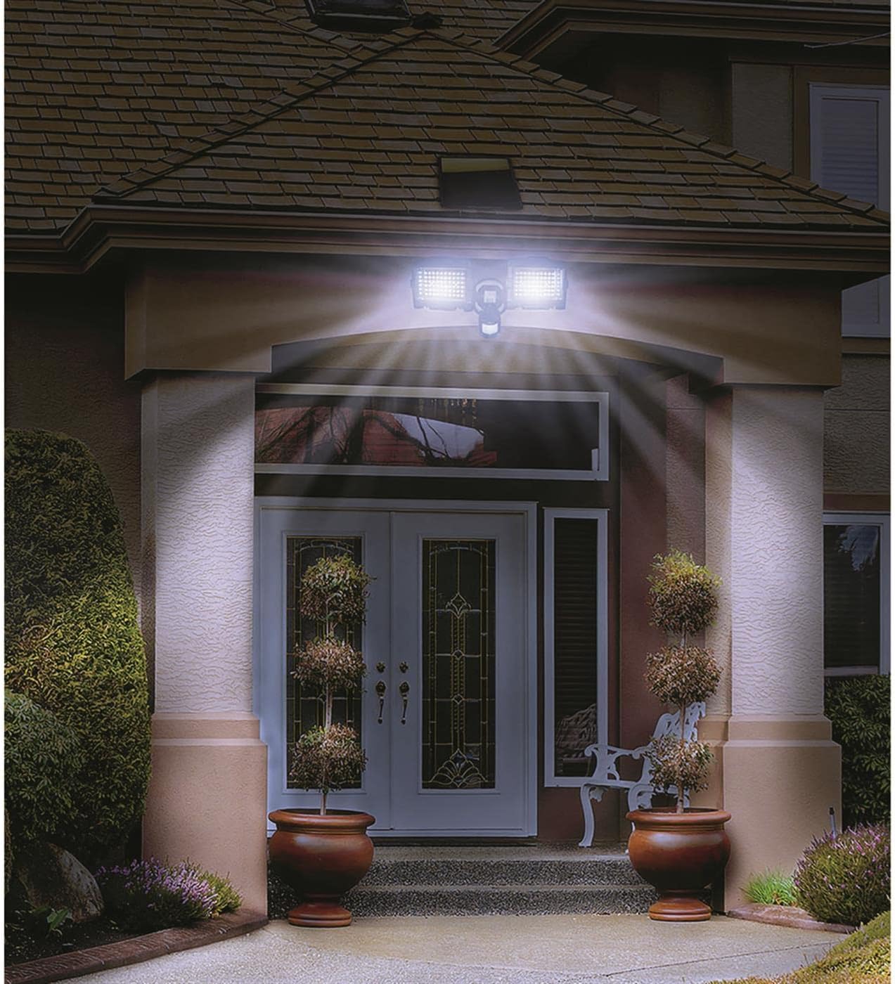 This solar powered light has two lamps with 60 super bright white LEDs each. It is activated by any motion up to 30 ft. away. The amorphous solar panel recharges the Efficient lithium-ion batteries even during overcast days for added security on those days. With a 15 ft. wire, the solar panel can be place in the area with maximum sun exposure. This feature allows for placement of the lamp in any area which would otherwise not be suitable for a solar light. The Security Light has three control dials: 1 for motion sensitivity; 1 for timer setting between 5-90 seconds; 1 for light sensitivity. These allow for maximum flexibility to meet all outdoor lighting situations. Roughly 180 minutes of light is available on a full charge. All hardware included for easy installation.