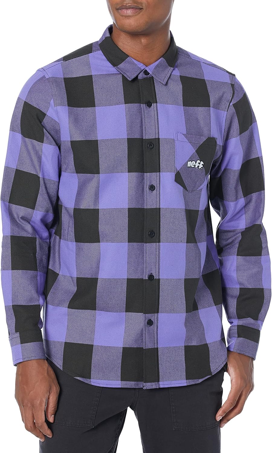 NEFF Men's Flannel Button Up Long Sleeve Shirt in Pink/Navy Blue. Featuring a classic flannel print, button up closure, button cuff wrists, front chest pocket with NEFF logo. Available in men's sizes small, medium, large, XL, 2XL, 3XL and 4XL. Made with soft, high quality materials. Neff is #FOREVERFUN!