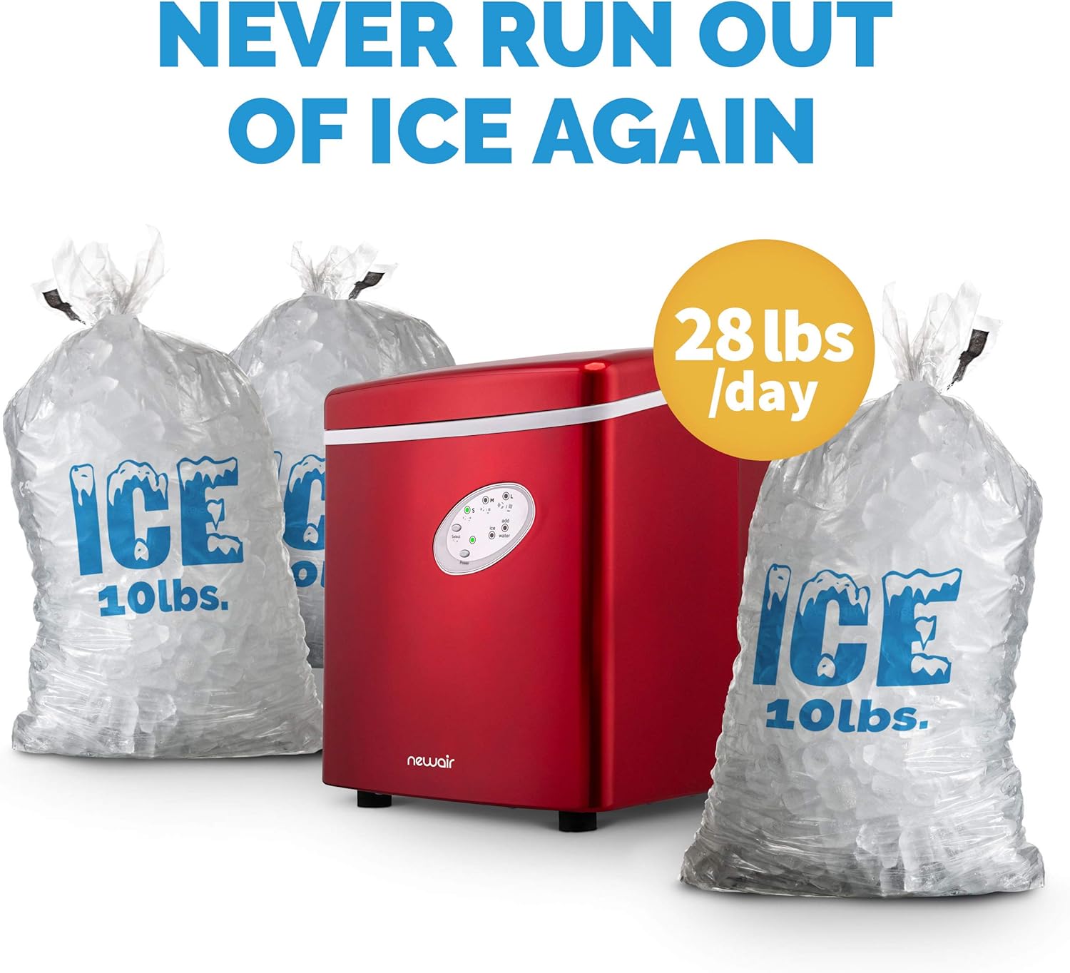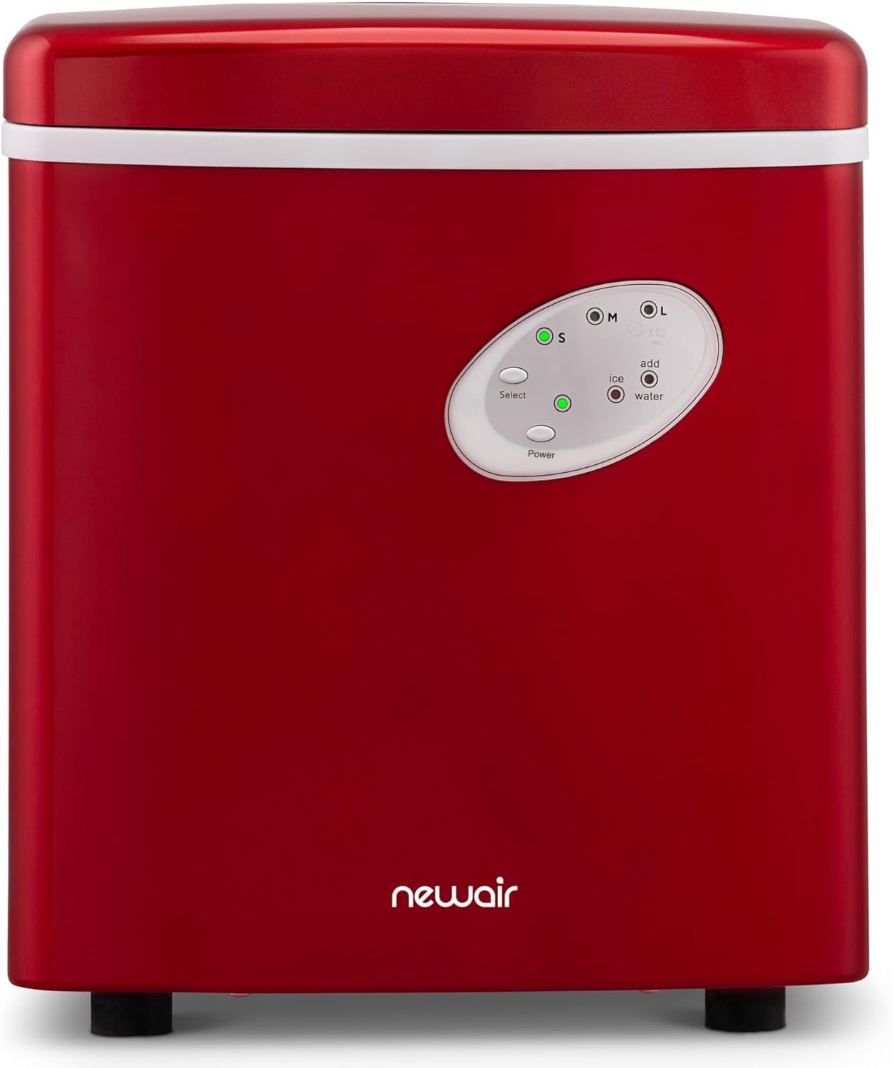 Product Description This Newair Countertop Ice Maker keeps you in a steady supply of ice for entertaining at home or everyday use. This compact ice maker looks great in your kitchen, but is also versatile enough to make 3 sizes of ice for any occasion. This Newair Countertop Ice Maker produces 28 pounds of bullet ice each day and keeps it cold in a well insulated storage compartment.1. Countertop Design, Outsized ProductionThe Newair Countertop Ice Maker fits neatly on your kitchen counter and makes 28 pounds of ice each day to keep you stocked for all your entertaining needs. That’s almost the same as purchasing three 10lb bags of store-bought ice in a single day. Choose from four great colors to match your decor.2. Fast Freezing Means More IceNeed ice quick? The Newair Countertop Ice Maker makes a new batch of ice every 10 minutes. Use the included scoop and removable ice tray to empty it regularly, and you'll have enough ice for any occasion.3. Three Sizes of Ice for Any OccasionChoose from small, medium or large bullet ice at the touch of a button. Small ice is perfect for drinks, while large ice easily fills coolers for outdoor activities. When you're done, the ice maker is easy to drain and clean, for fresh and great tasting ice every time.4. Simple, Two-Button OperationThere's no learning curve here! Simply turn the unit on and choose your ice size. Clear indicator lights let you know when ice is ready and when you need to add water without any guesswork.5. Insulated Storage CompartmentKeep your ice colder for longer thanks to the ultra-insulated storage area inside this ice maker. Forgot about the last cubes? No worries. Water from melted ice drains back into the machine and is recycled in the next round of ice making. From the Manufacturer Never buy extra ice again with the NewAir AI-100R Portable Ice Maker. This helpful unit makes up to 28 pounds of ice per day, which is perfect for use at parties, picnics, barbecues or anytime you need a ready supply. It also offers a portable design that allows you to use it indoors or out and its compact enough to fit on countertops or tables, or wherever you need it. 3 Cube Sizes - The NewAir AI-100R countertop icemaker lets you choose from small, medium or large sized ice cubes. Fast Freezing Cycle - This ice maker produces a new batch of cubes every 6 to 15 minutes, so you never have to wait long for fresh ice! Electronic Controls - Easily make ice with the NewAir portable ice maker. It features an easy to use control panel with push-button controls and indicator lights to let you know when to add water or when your ice is ready. Get Started Fast - Just plug in the AI-100R, fill the tank and start making ice. There is no permanent installation is required and the unit fits easily on tables, countertops and other tight spaces.