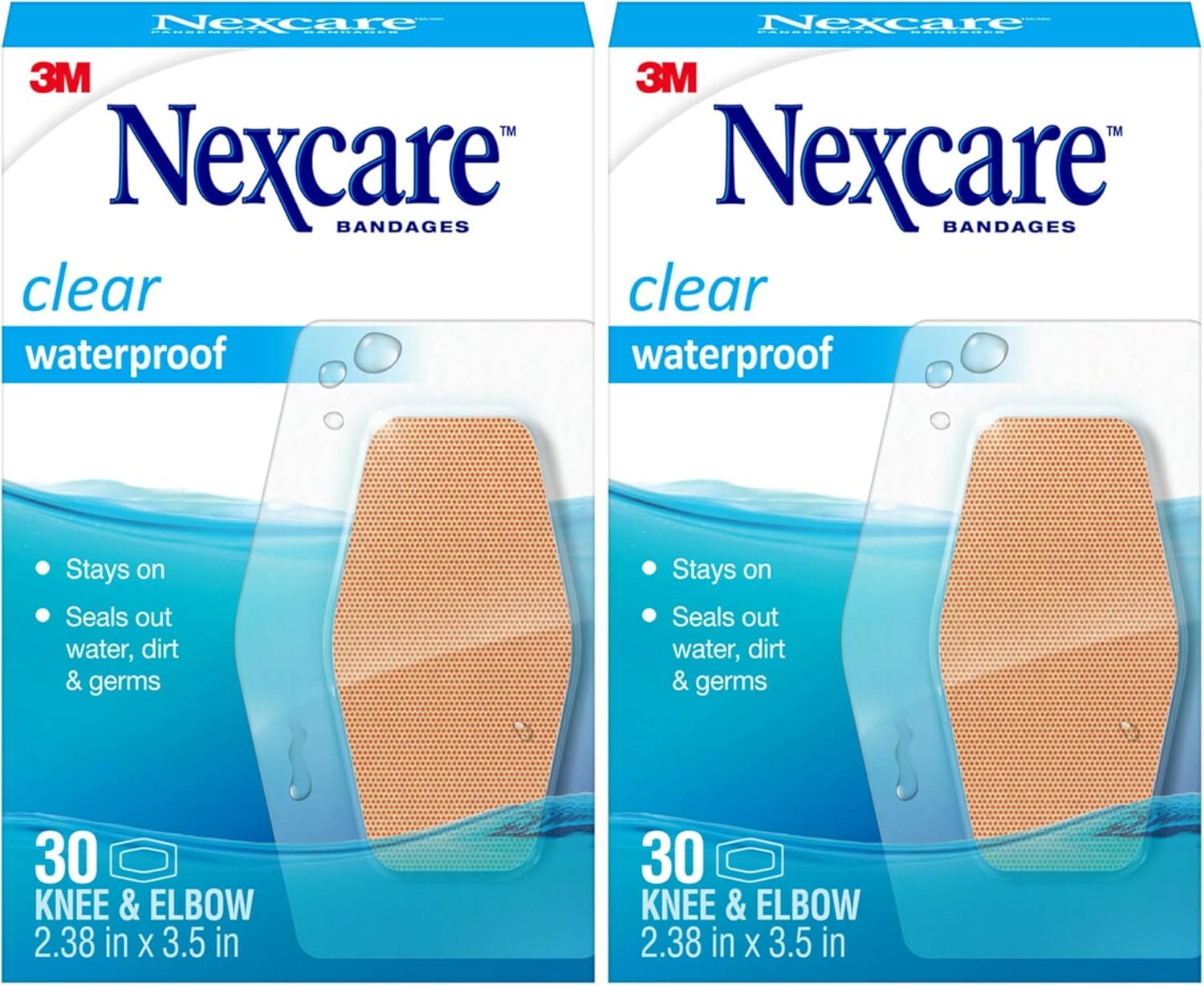 Nexcare Waterproof Bandages stay on during wet conditions while providing exceptional waterproof protection to minor wounds. The ultra-thin, breathable adhesive bandages have a 360-degree seal that protects against water, dirt and germs to help prevent infection. A clear flexible backing and nonstick pad allow these clear bandages to easily adhere and conform to fingers, elbows, knees and other hard-to-bandage areas during activities. A variety of bandages assorted packs, including 8 counts, 20 counts, 50 counts and 100 counts, are available to suit all your first aid needs. Nexcare Waterproof Bandages hold up to 12 hours and deserve a spot in every first aid kit, offering reliable care that keeps you moving at your everyday pace. Trust Nexcare for bandages that provide outstanding protection with hospital-proven technology.