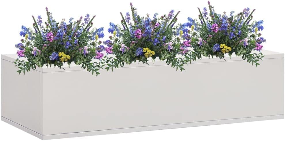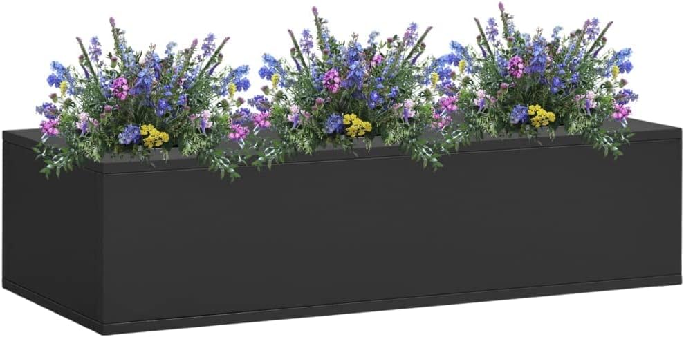This flower box is a choice to grow flowers or plants in your office.The flower pot is made of steel, making it durable as well as easy to clean. Its modern design will make a decorative addition to any room or office space. This plant box can accommodate a considerable number of green plants and flowers, for different spaces.Color: AnthraciteMaterial: SteelDimensions: 35.4" x 15.7" x 9.1" (W x D x H)The diameter of hole: 7.1"Total loading capacity: 44.1 lbAssembly required: Yes