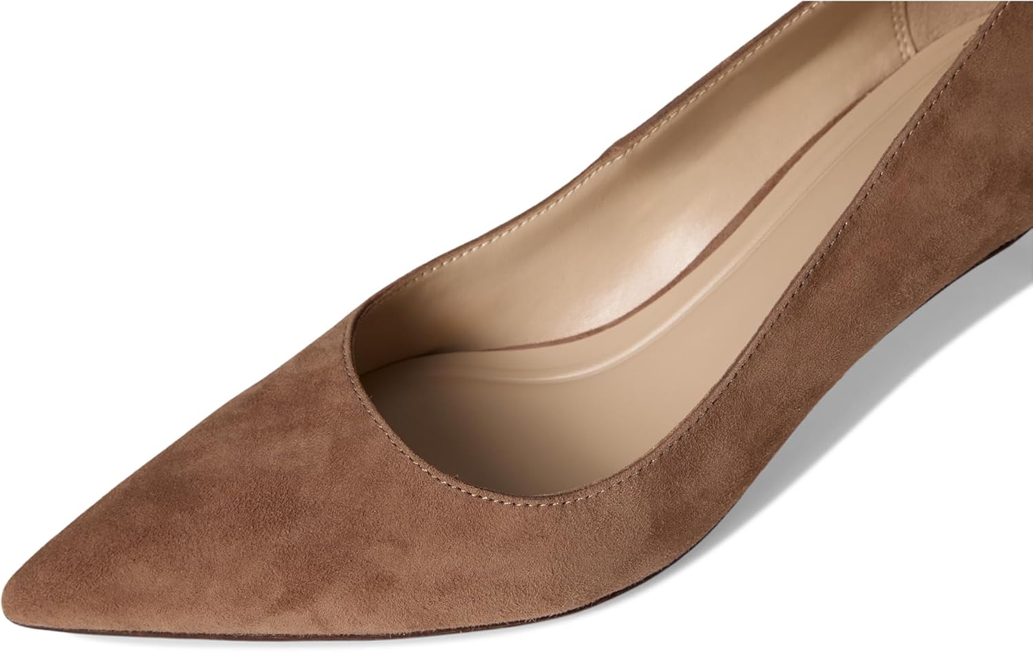 This is a classic pointed-toe pump crafted in a rich suede. The silhouette is sleek and elegant, with a low-cut vamp that elongates the foot. It features a modest kitten heel—approximately 2 inches in height—offering a refined lift while maintaining comfort. The smooth texture of the suede adds a soft, luxurious touch, making it an ideal choice for both professional and dressy occasions. This versatile shoe balances sophistication with understated style.